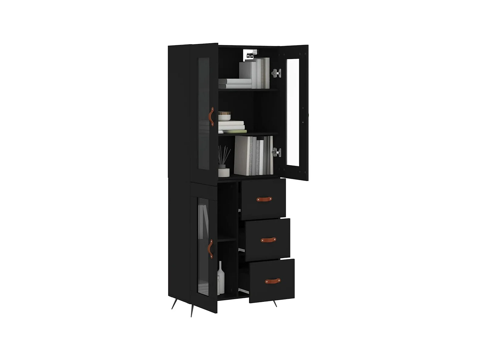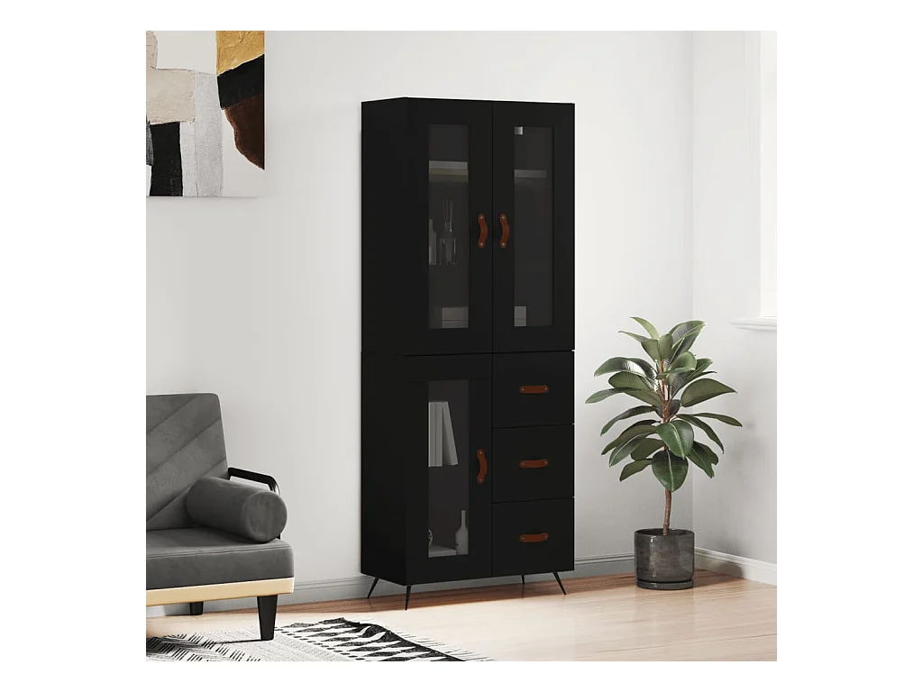 Buffet haut Noir 69,5x34x180 cm Bois d'ingénierie QWE75742