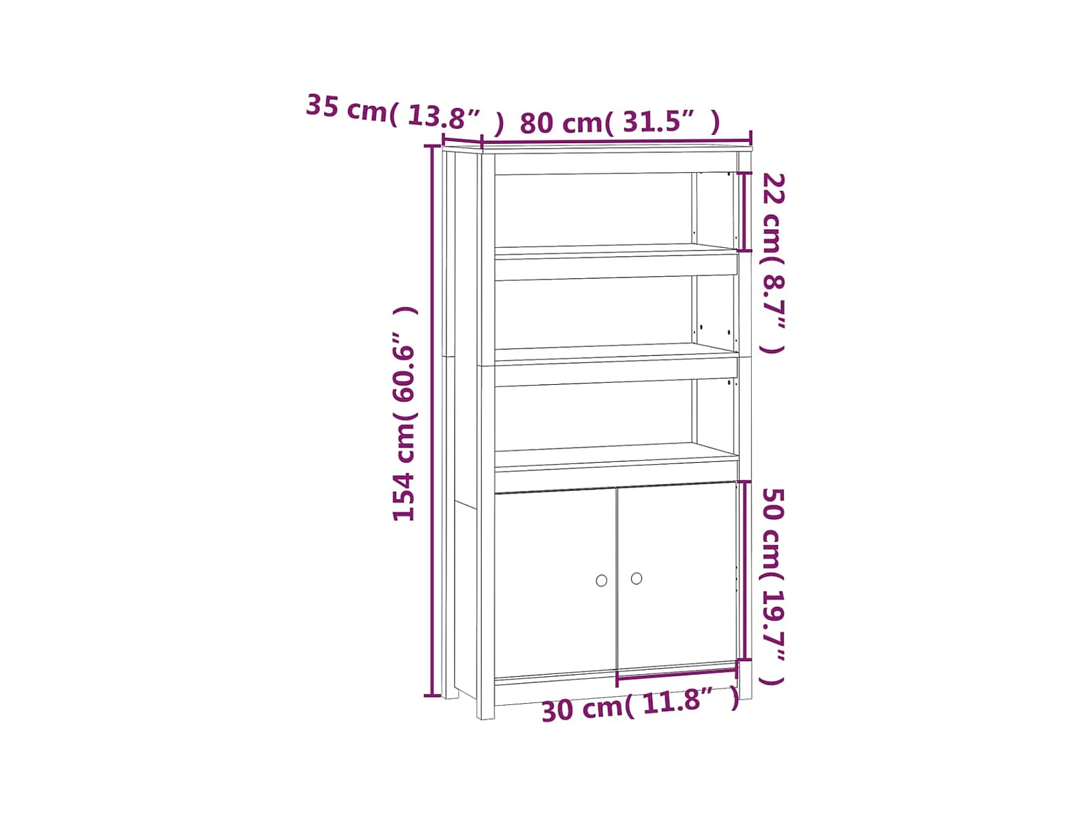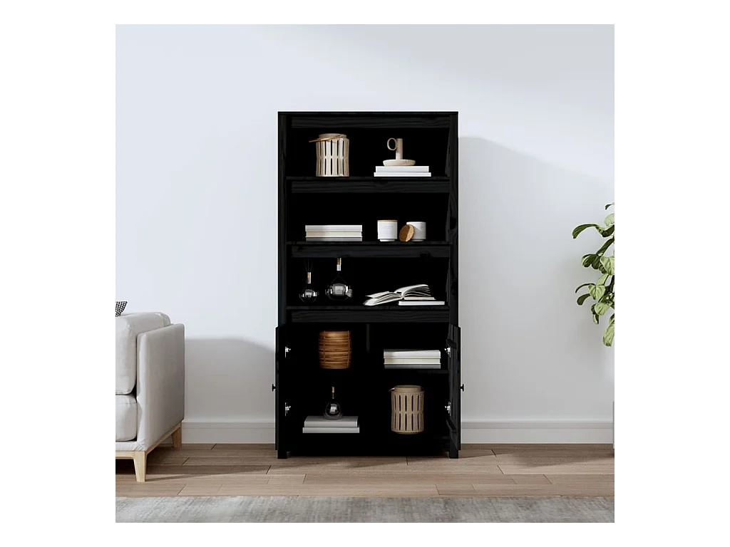 Buffet haut Noir 80x35x154 cm Bois massif de pin EGER56364