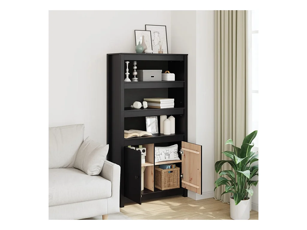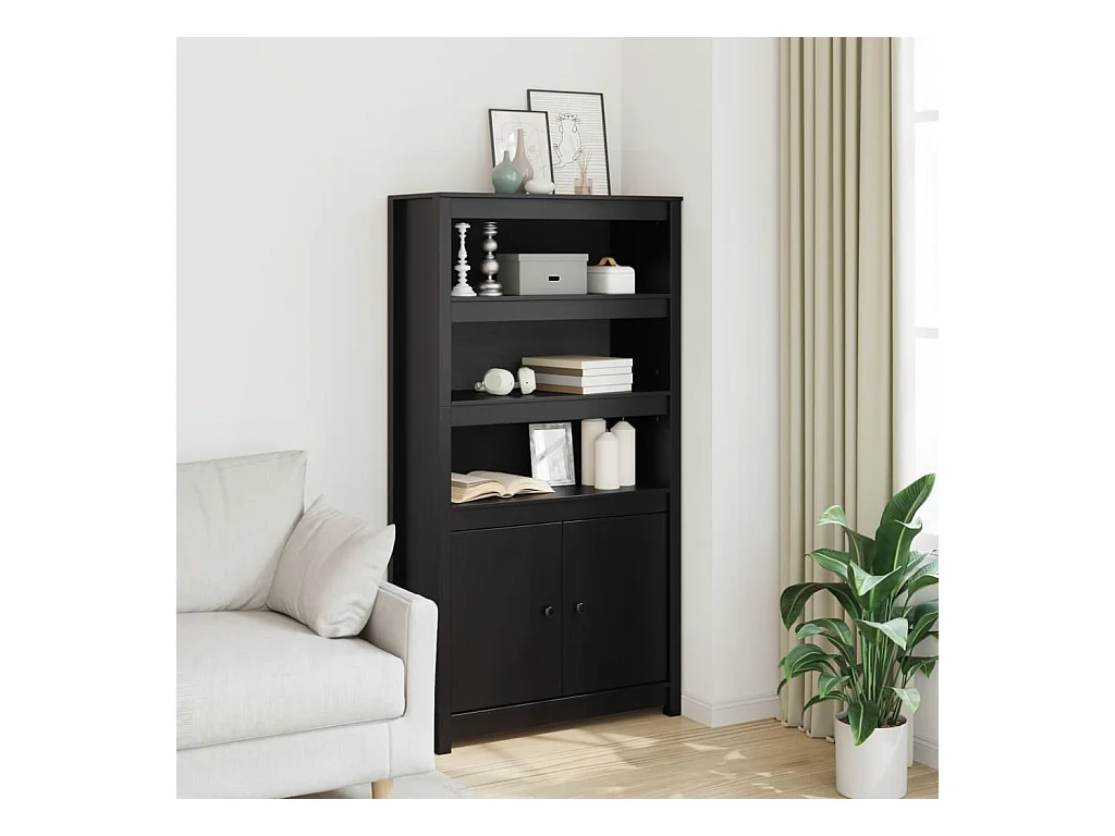 Buffet haut Noir 80x35x154 cm Bois massif de pin