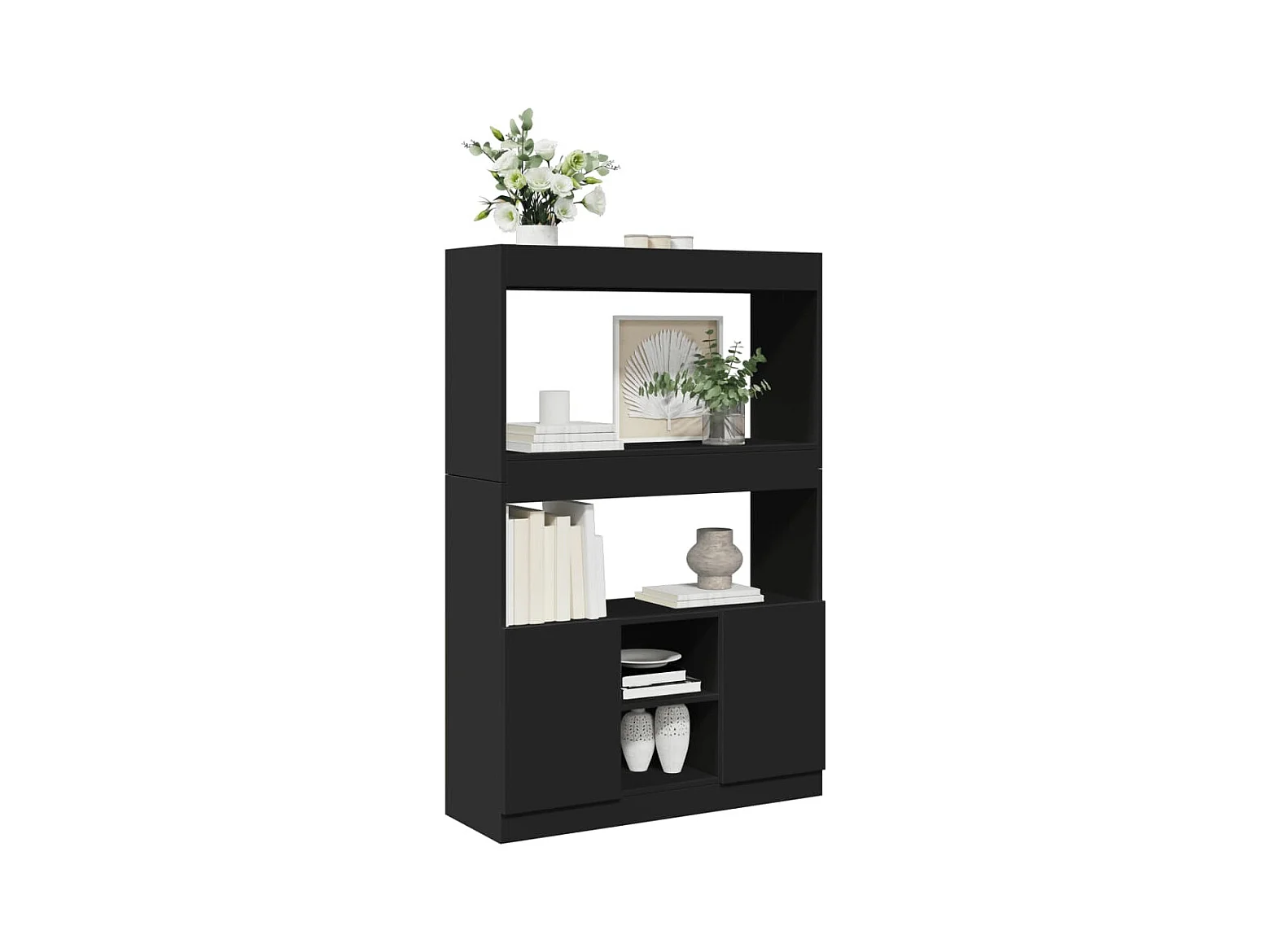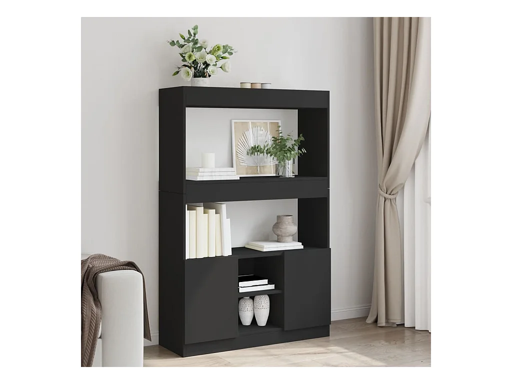 Buffet haut noir 92x33x140 cm bois d'ingénierie