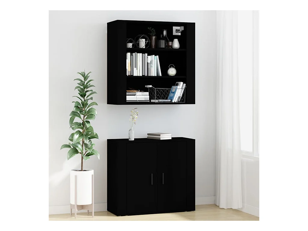 Buffets 2 pièces noir bois d'ingénierie