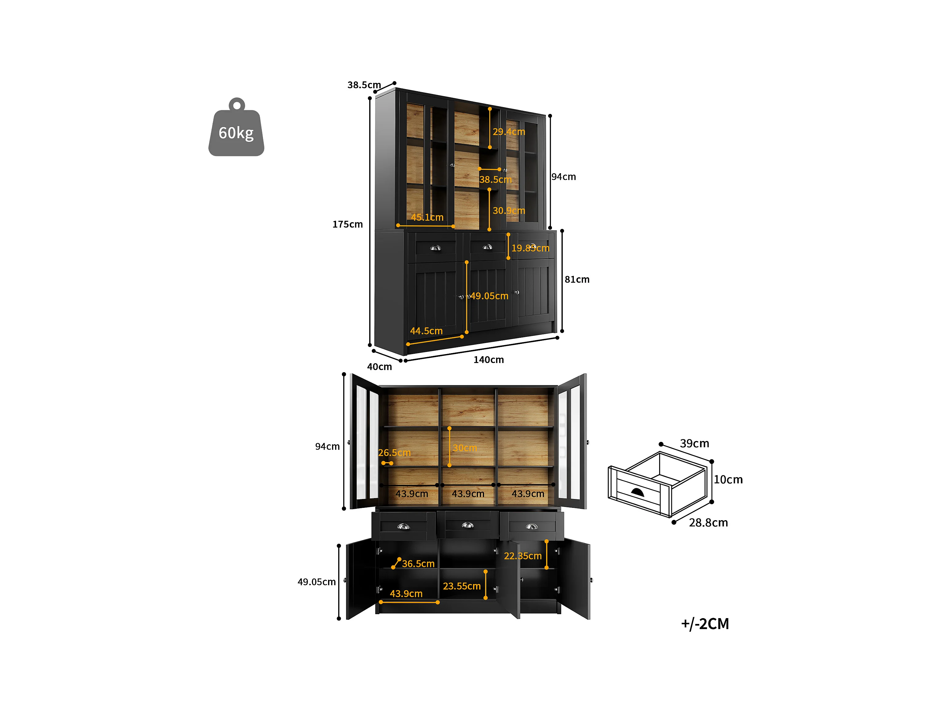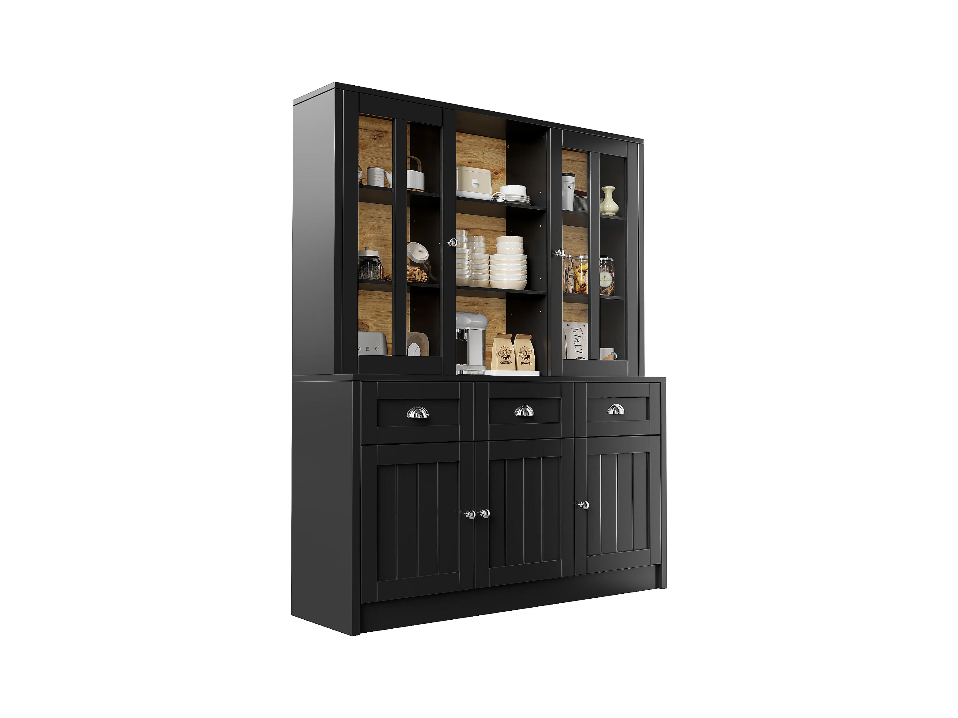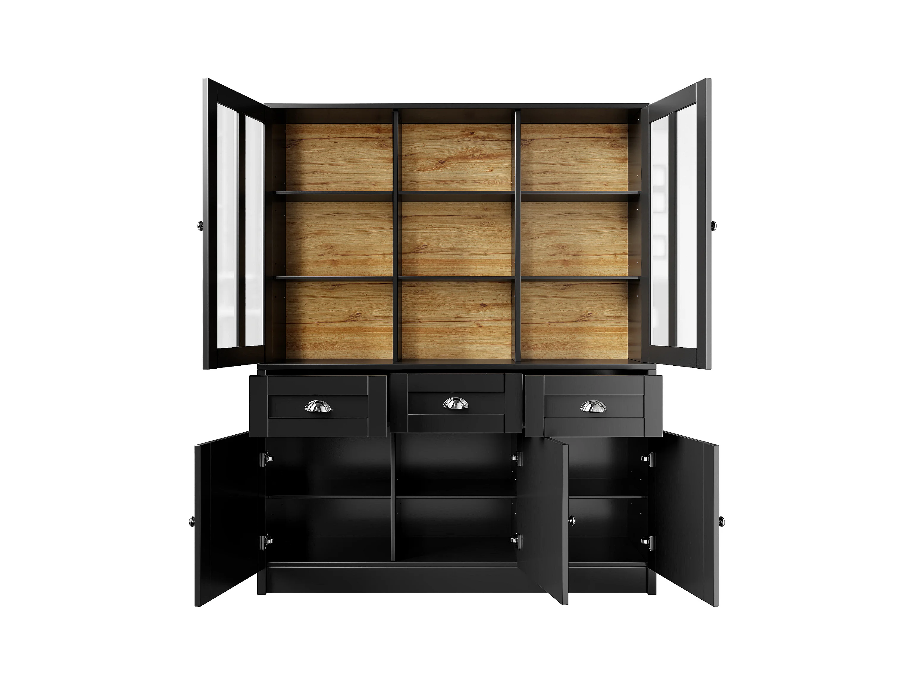 Buffet haut noir - Meuble haut 5 portes et 3 tiroirs - rangement ouvert - pour cuisines et salons