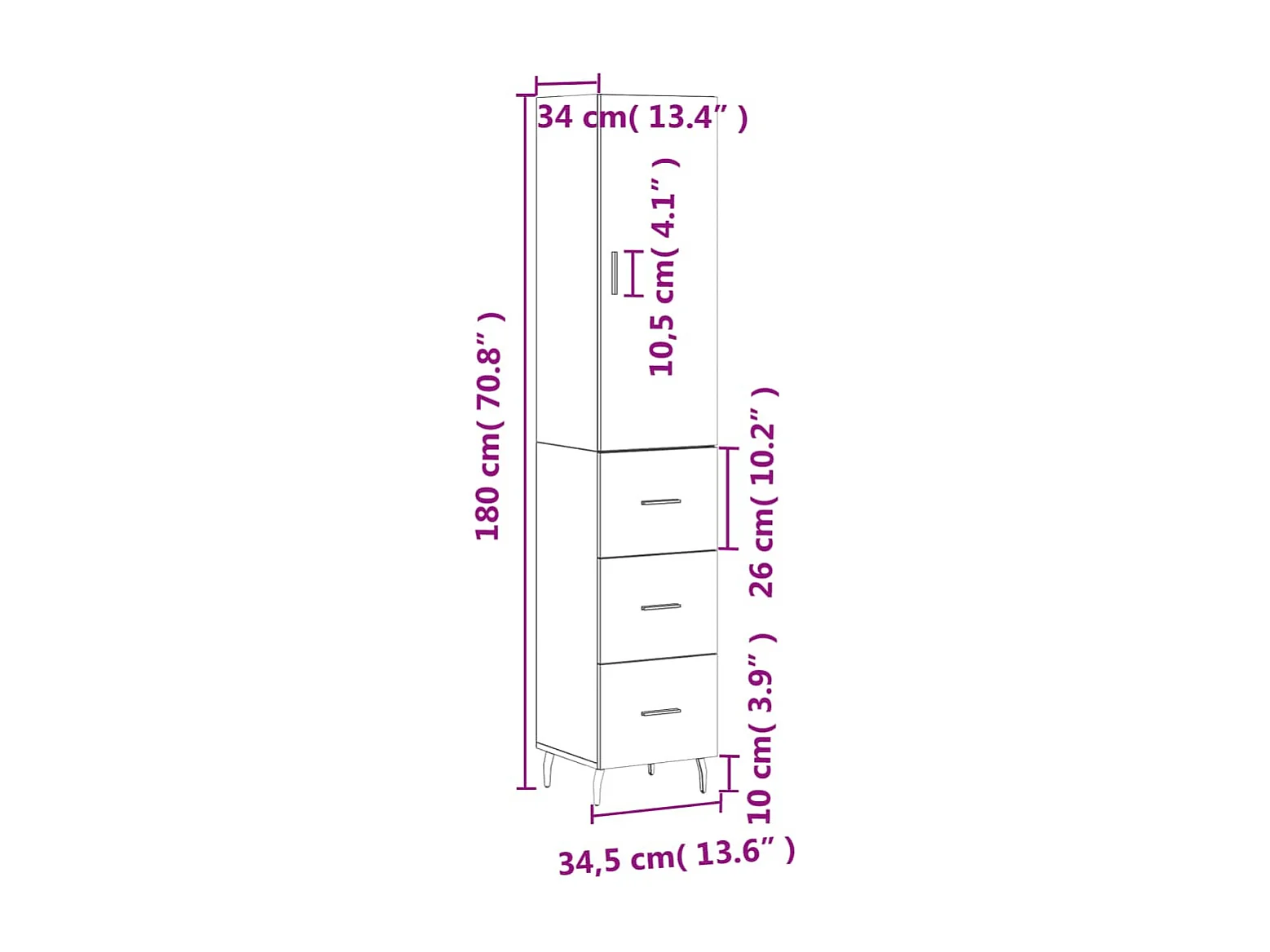 Buffet haut Sonoma gris 34,5x34x180 cm Bois d'ingénierie