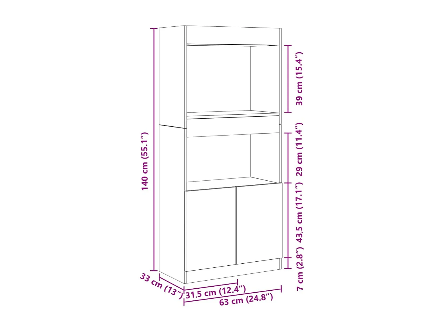 Buffet haut sonoma gris 63x33x140 cm bois d'ingénierie