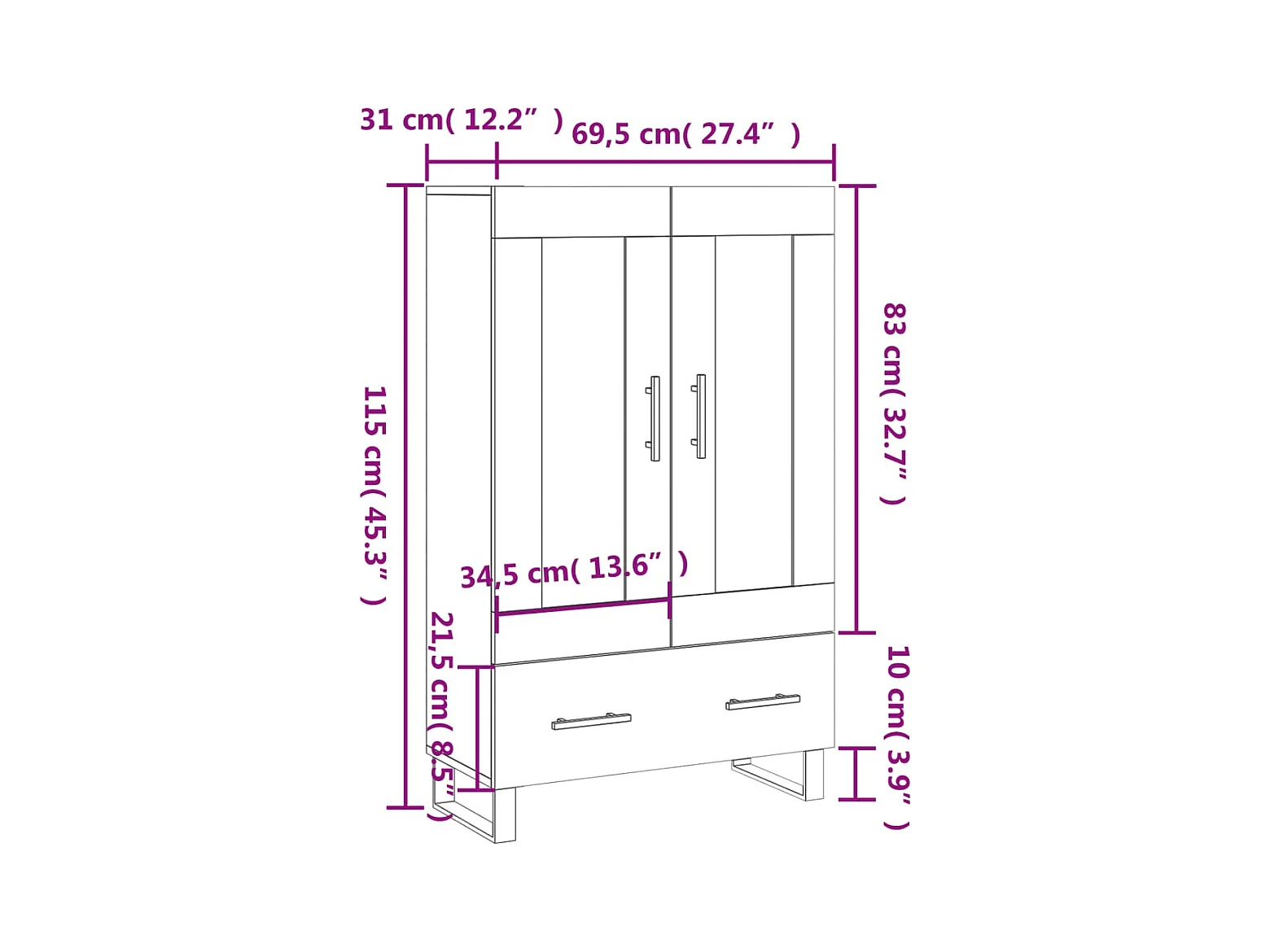 Buffet haut sonoma gris 69,5x31x115 cm bois d'ingénierie