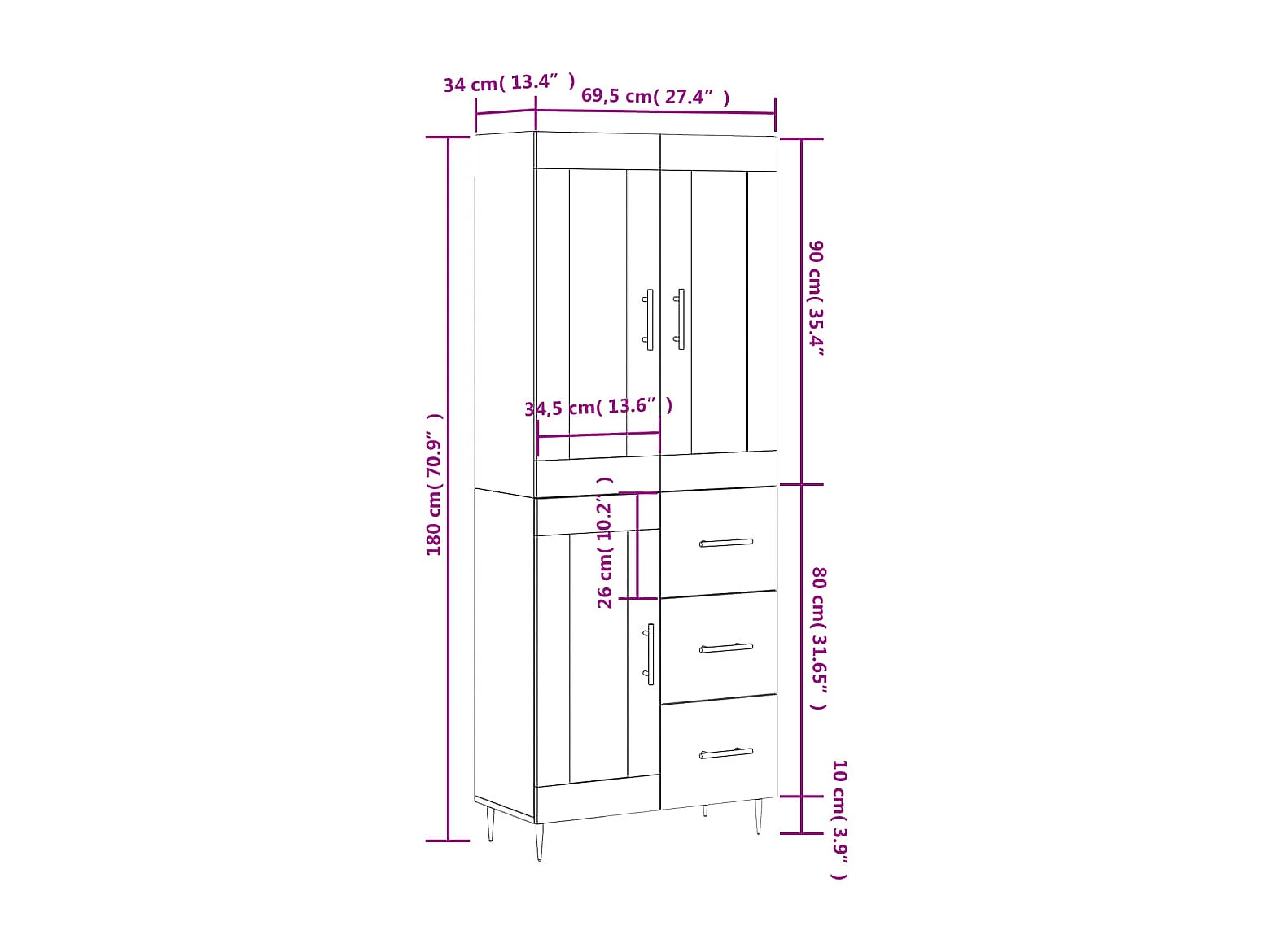 Buffet haut Sonoma gris 69,5x34x180 cm Bois d'ingénierie