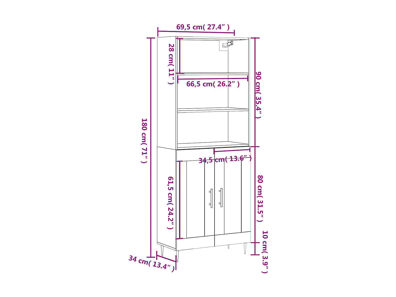 Buffet haut Gris béton 69,5x34x180 cm Bois d'ingénierie