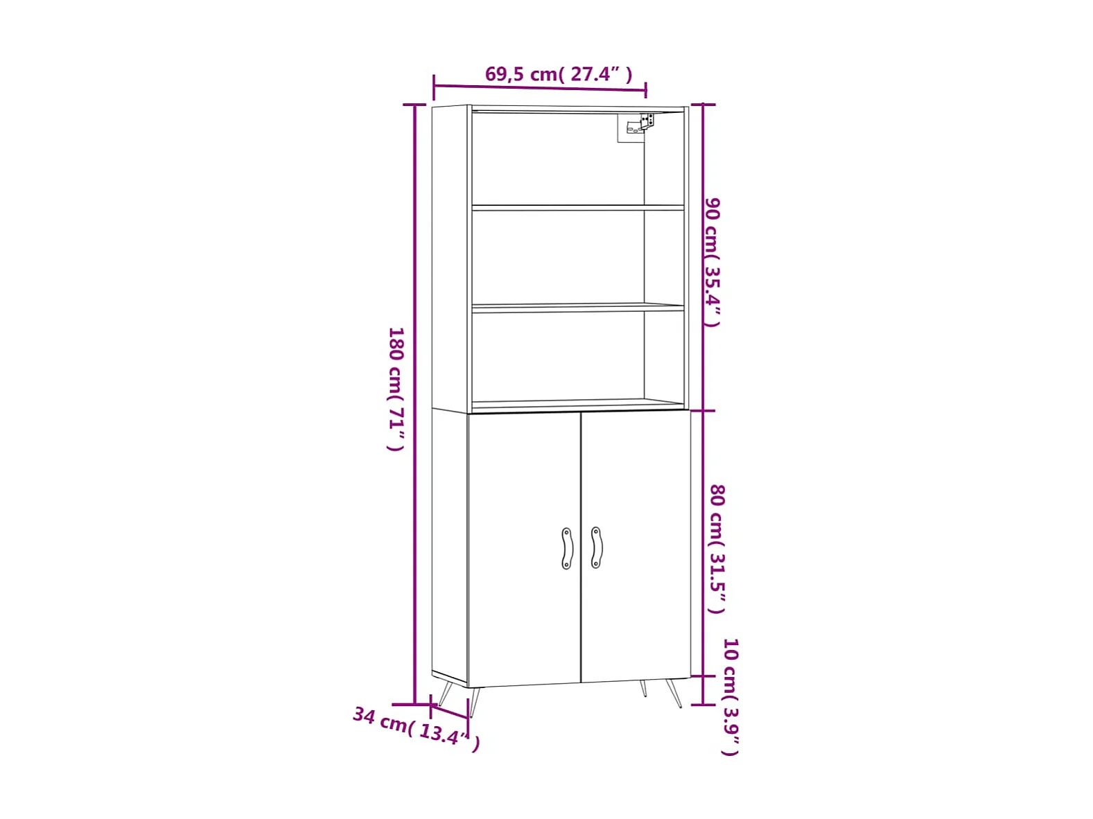 Buffet haut Sonoma gris 69,5x34x180 cm Bois d'ingénierie QWE73637