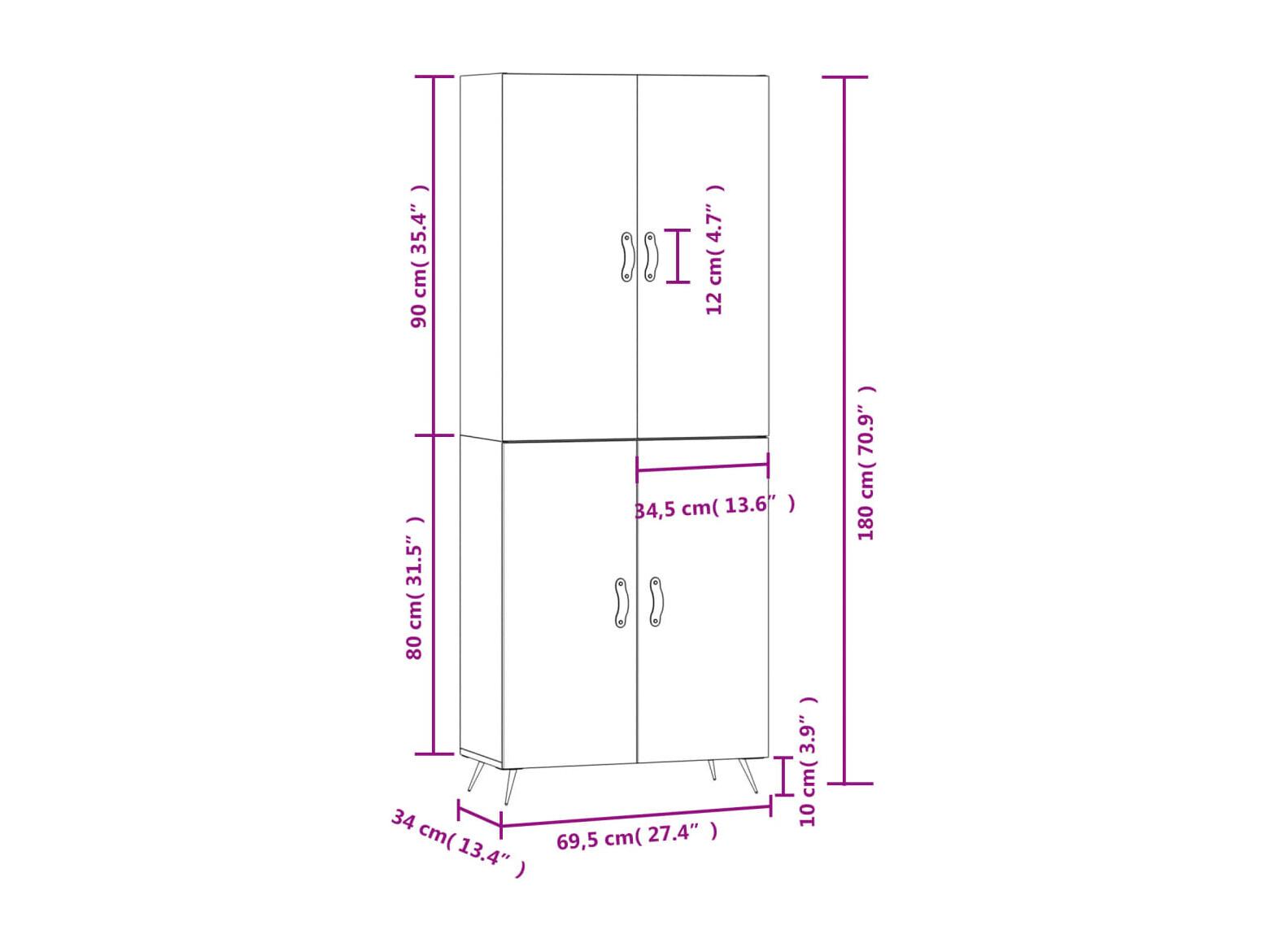 Buffet haut Sonoma gris 69,5x34x180 cm Bois d'ingénierie