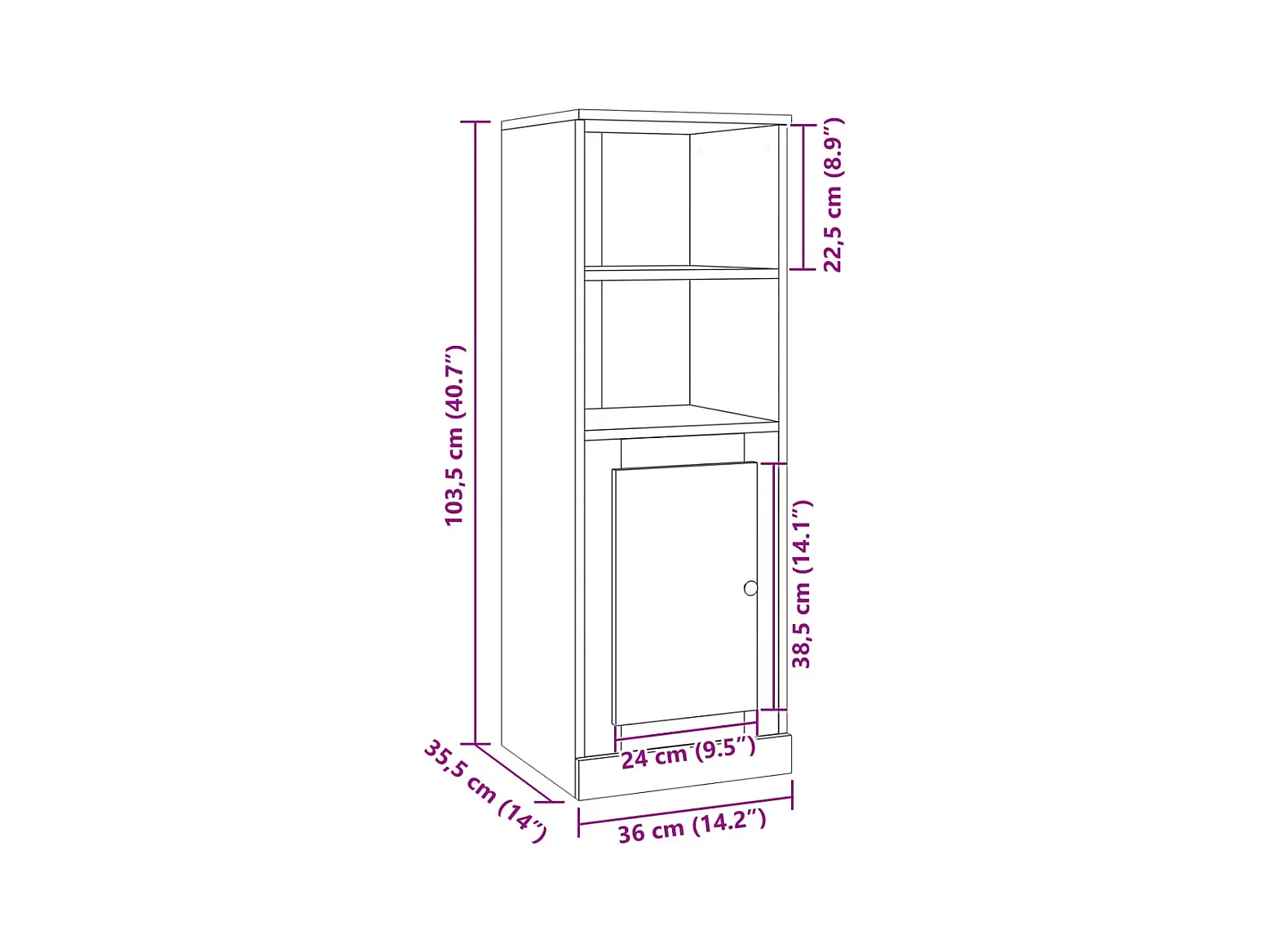 Buffet haut chêne artisanal 36x35,5x103,5 cm bois d'ingénierie