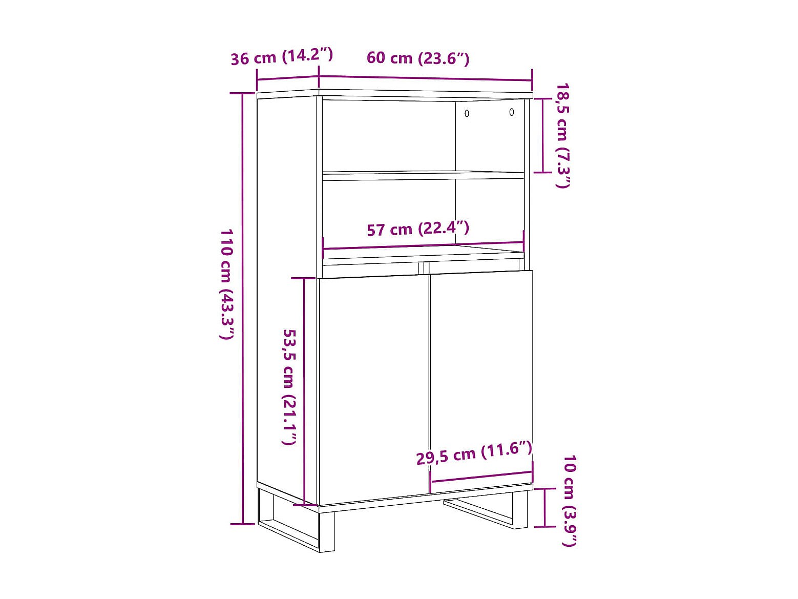 Buffet haut vieux bois 60x36x110 cm bois d'ingénierie