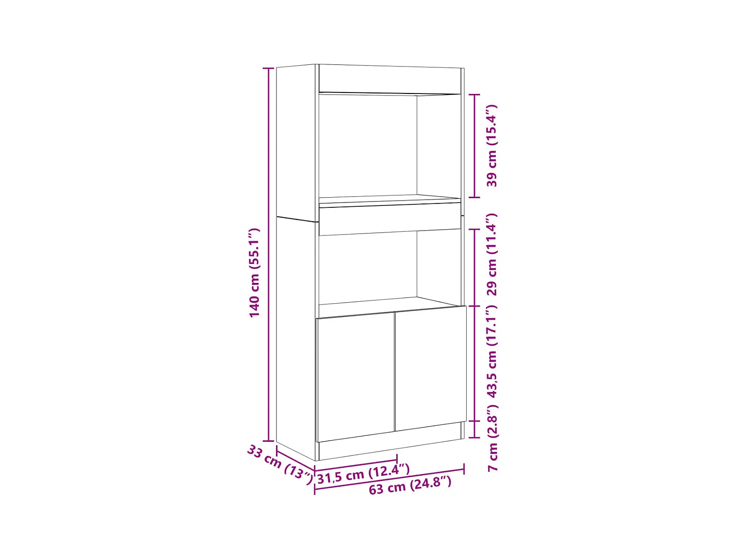 Buffet haut vieux bois 63x33x140 cm bois d'ingénierie