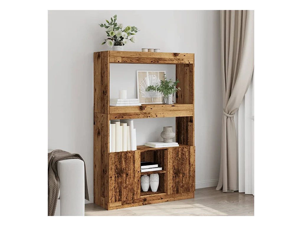 Buffet haut vieux bois 92x33x140 cm bois d'ingénierie