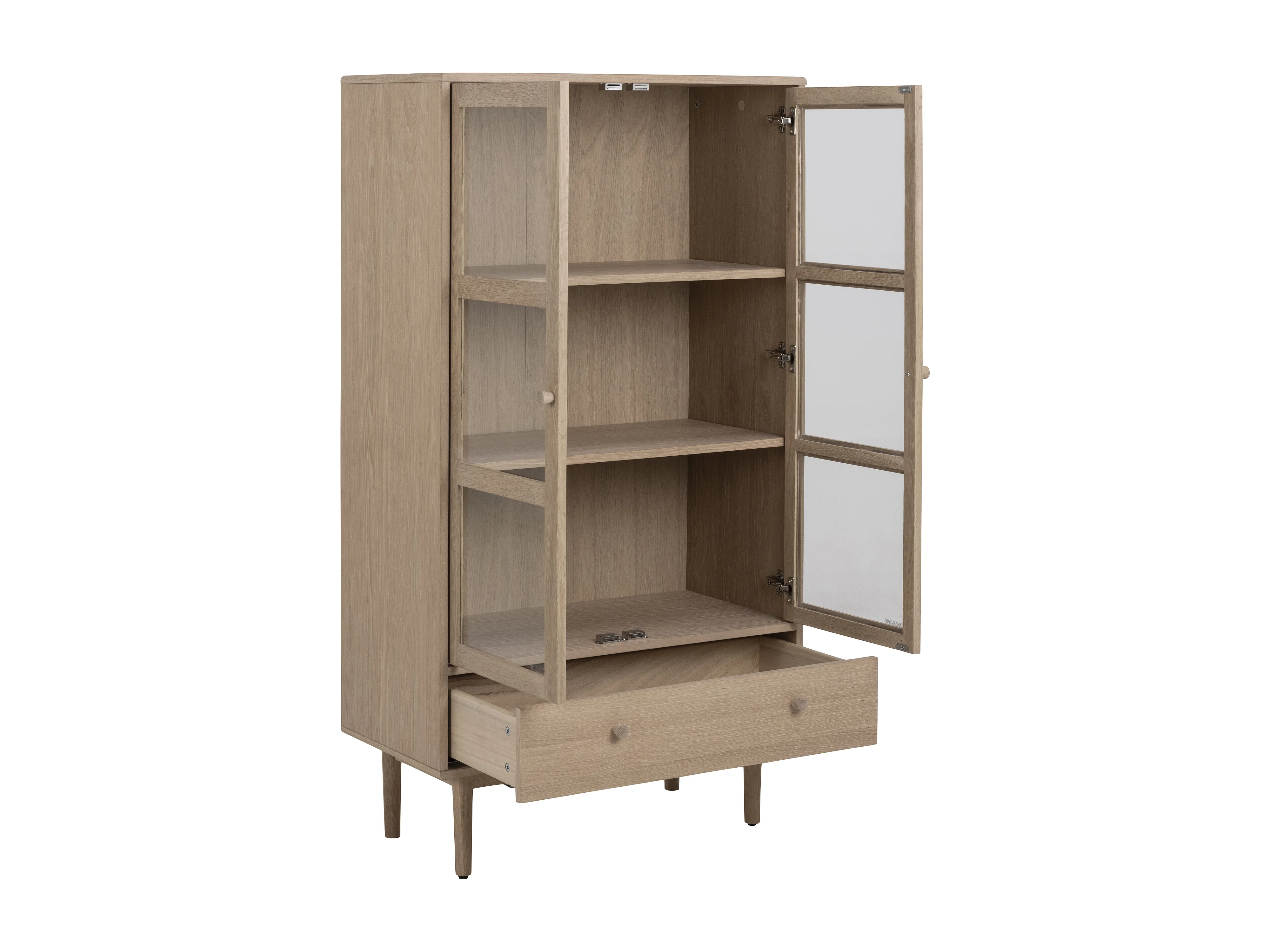 Aston Vitrine avec 2 portes vitrées et 1 tiroir, imitation chêne huilé, blanc.