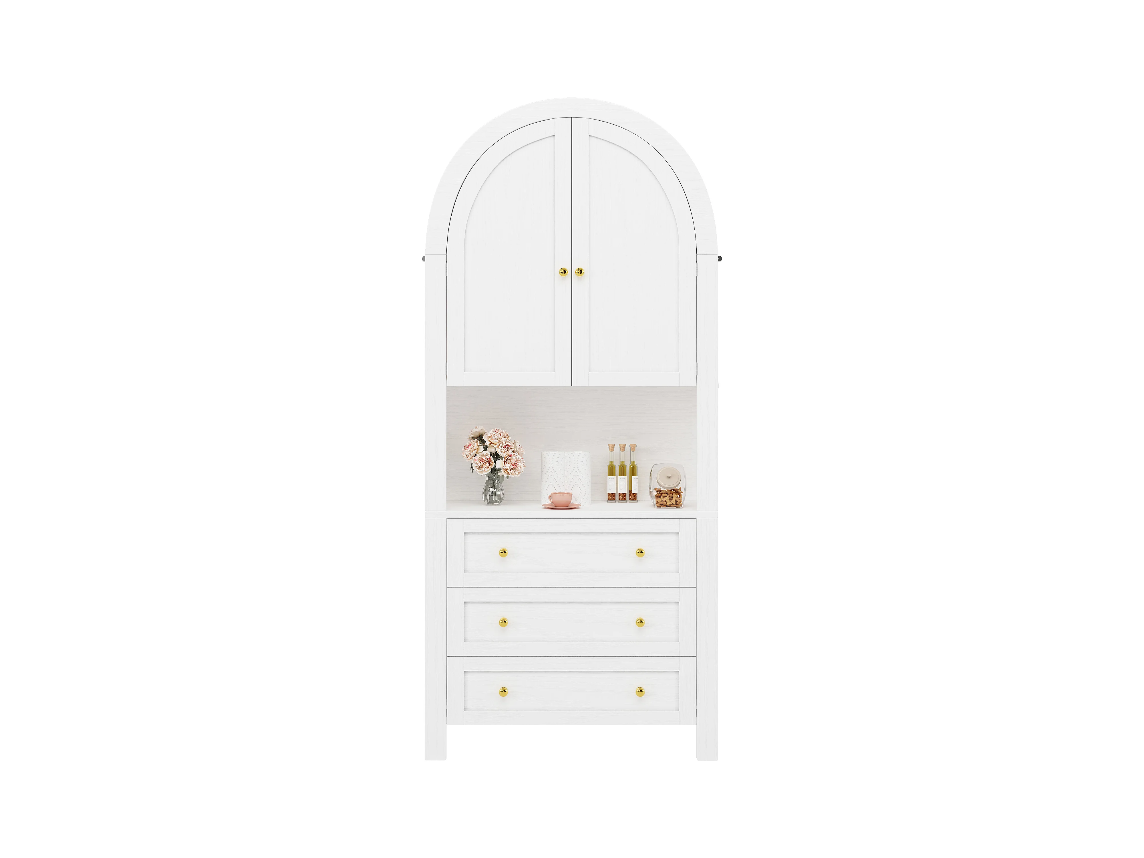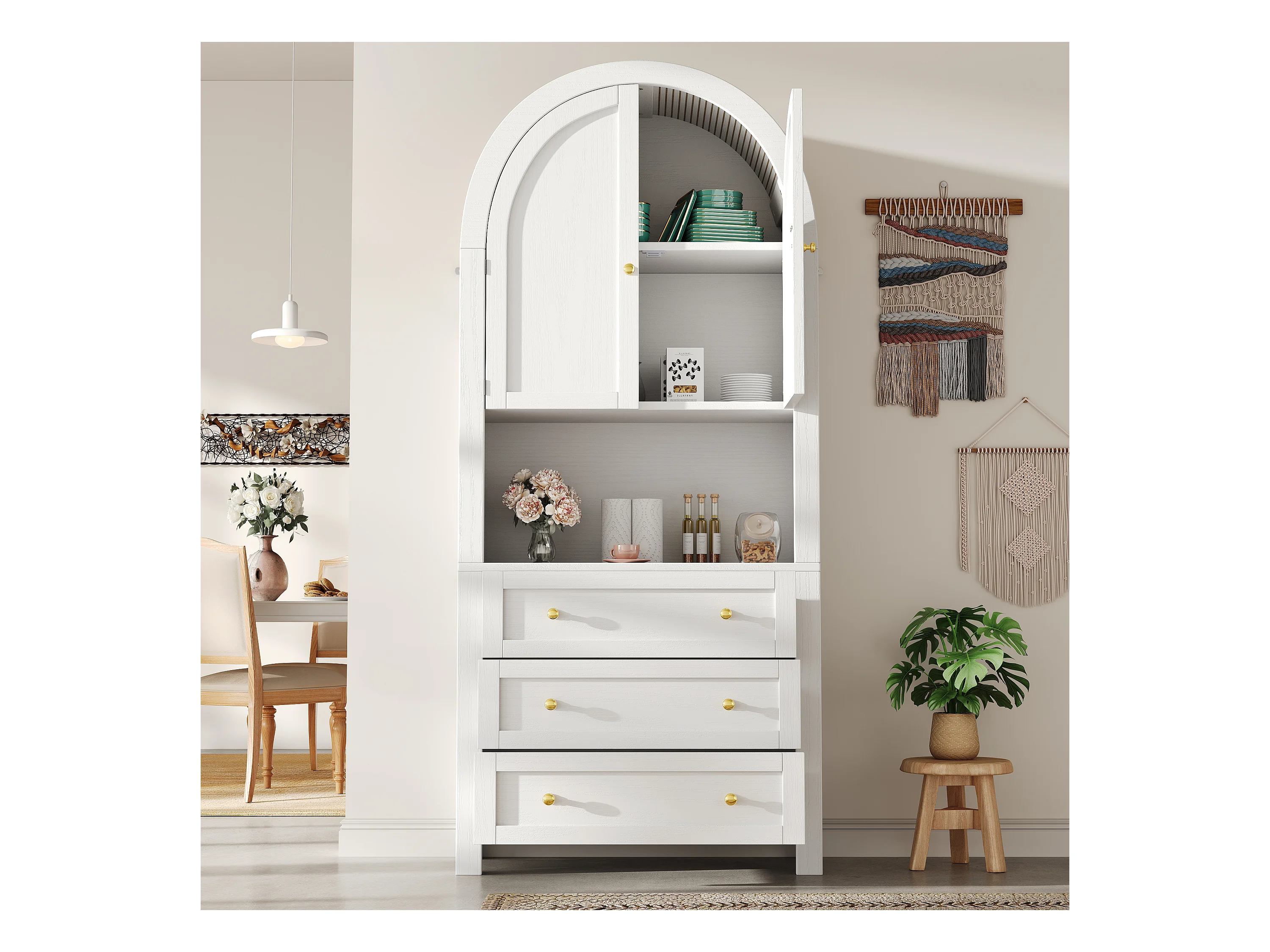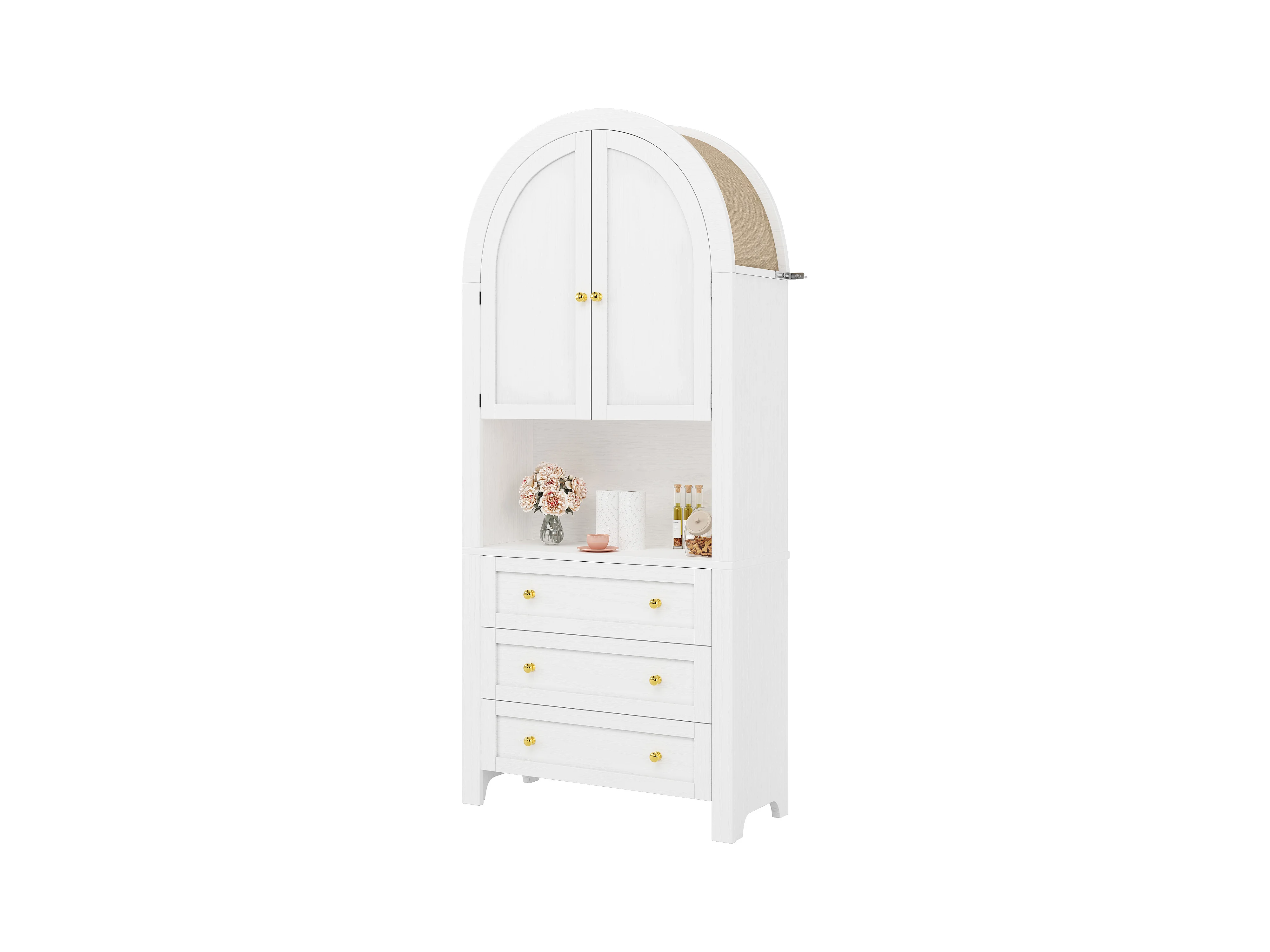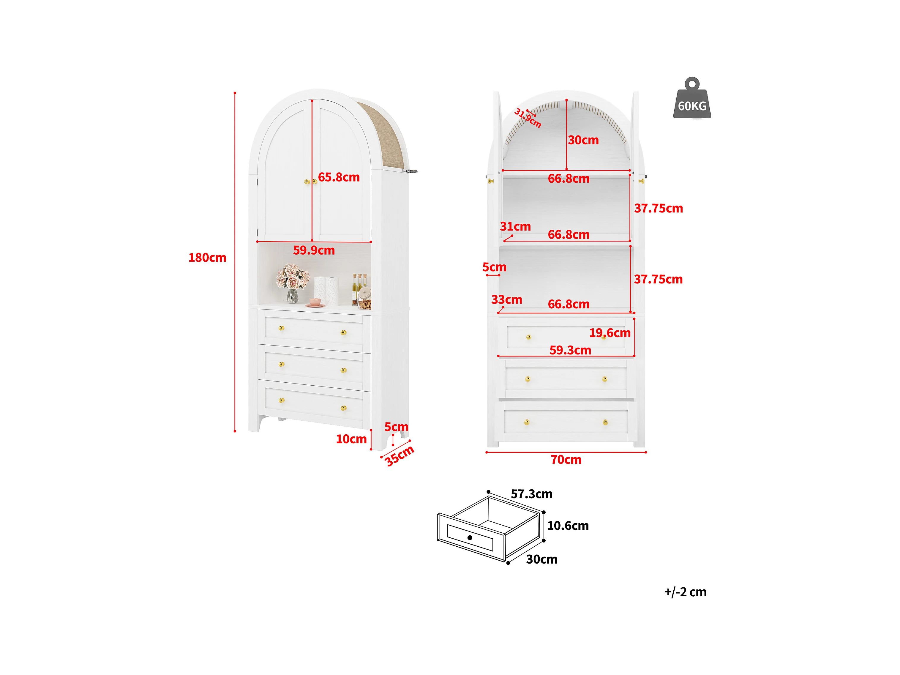 Buffet haute de rangement - 70 x 35 x 180 cm - en arc avec 3 tiroirs et 2 portes - MDF - blanc