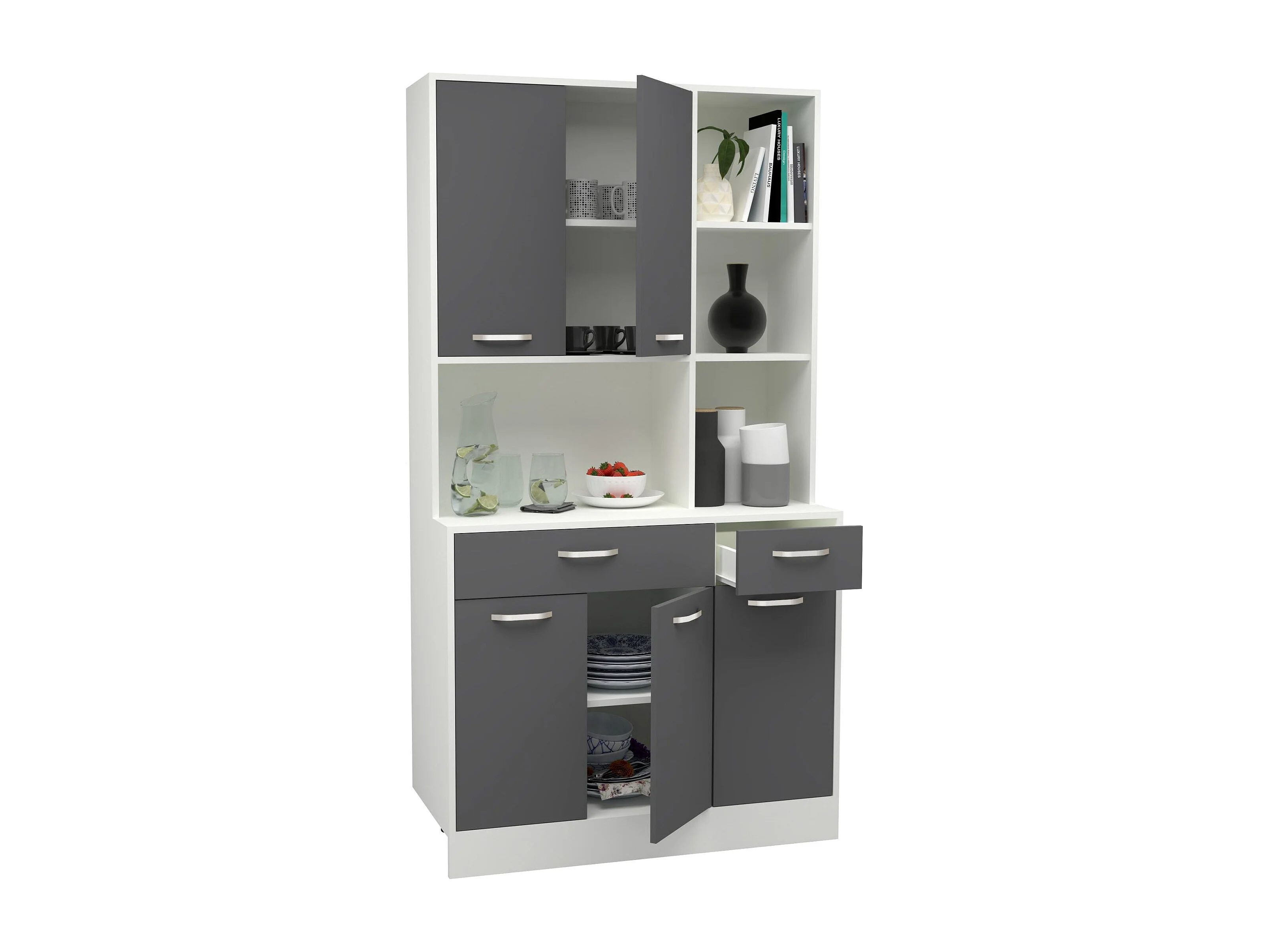 Buffet Hugo haaus, Anthracite/Blanc, 100 x 44 x 188 cm