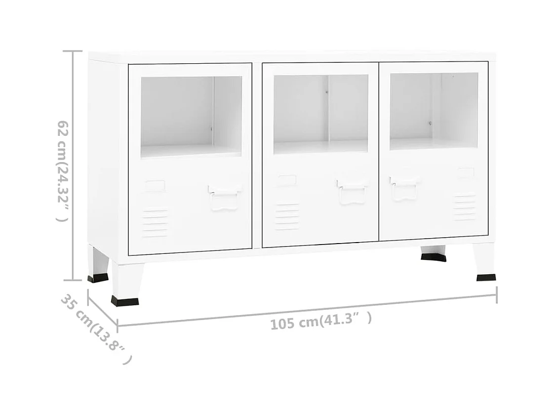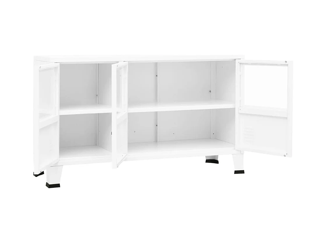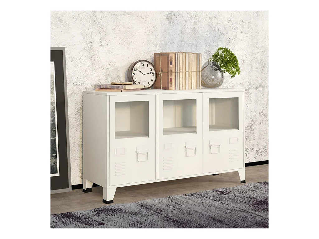 Buffet industriel Blanc 105x35x62 cm Métal et verre