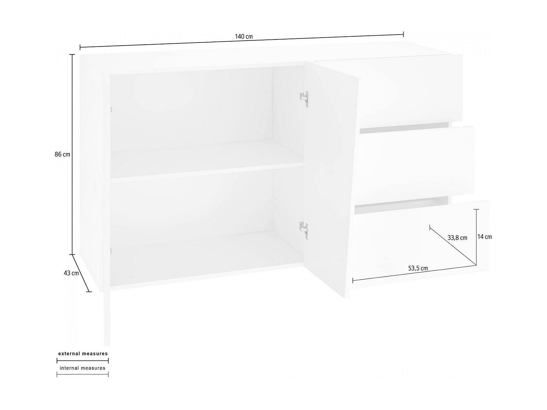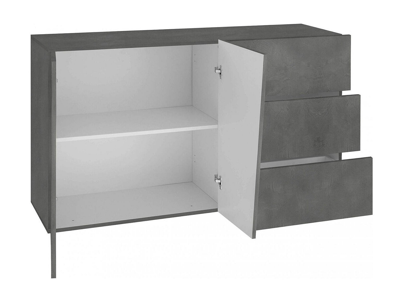 Buffet Noè, Buffet de cuisine avec 2 portes et 3 tiroirs, Buffet de salon, 100% Made in Italy, 143x44h86 cm, Ciment