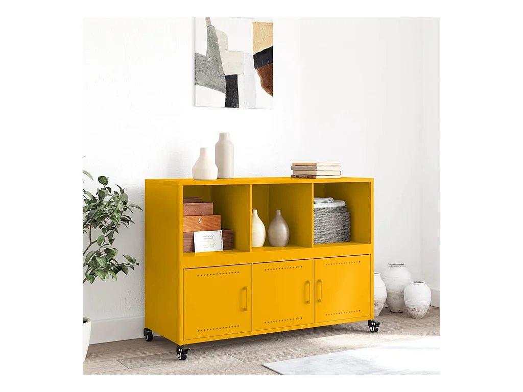 Buffet jaune moutarde 100,5x39x107 cm acier laminé à froid