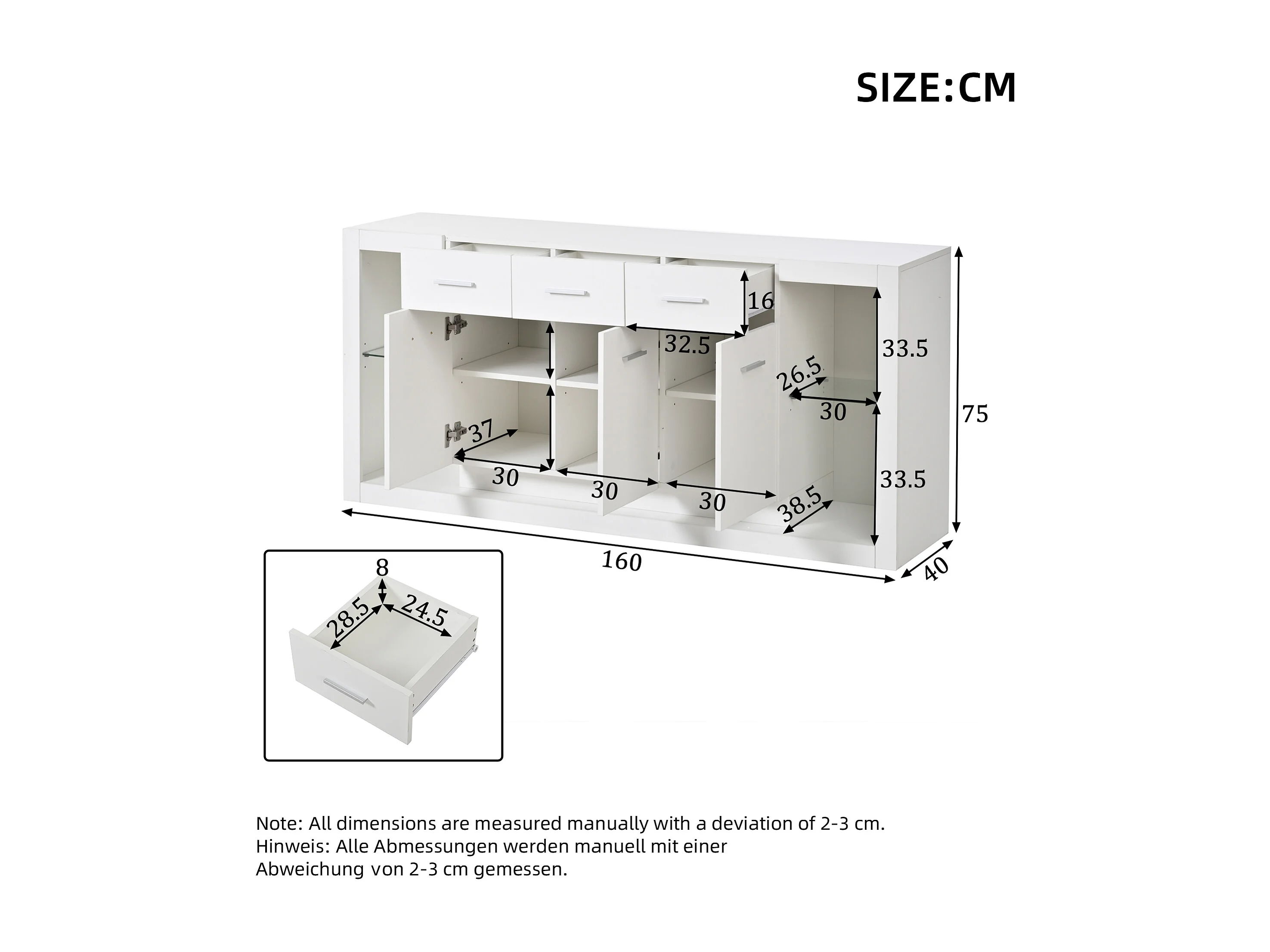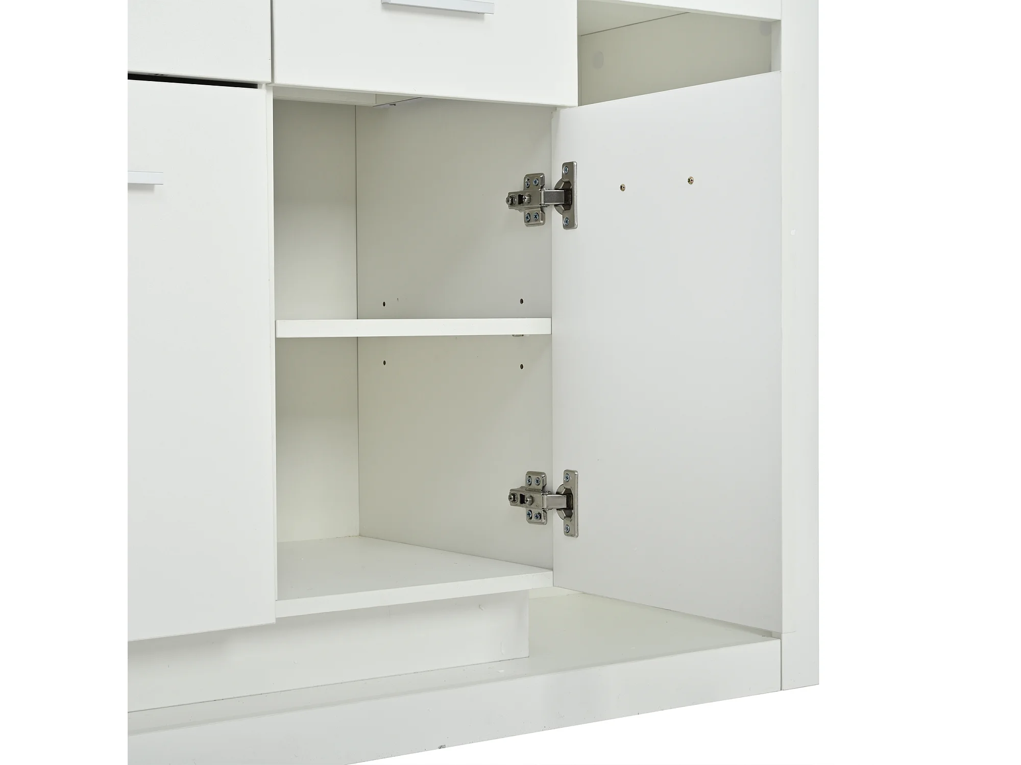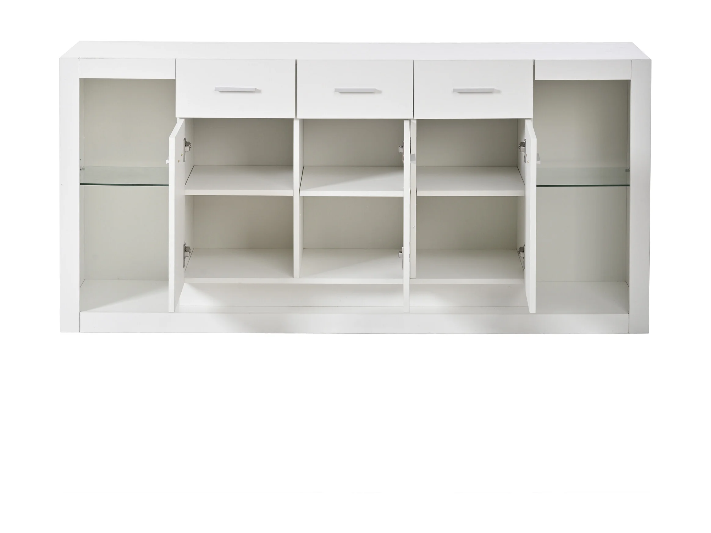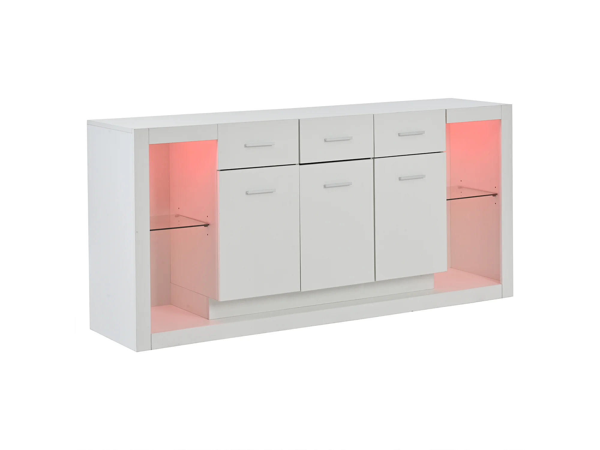 Buffet LED avec étagères réglables, 3 tiroirs et 3 portes - Finition brillant blanc