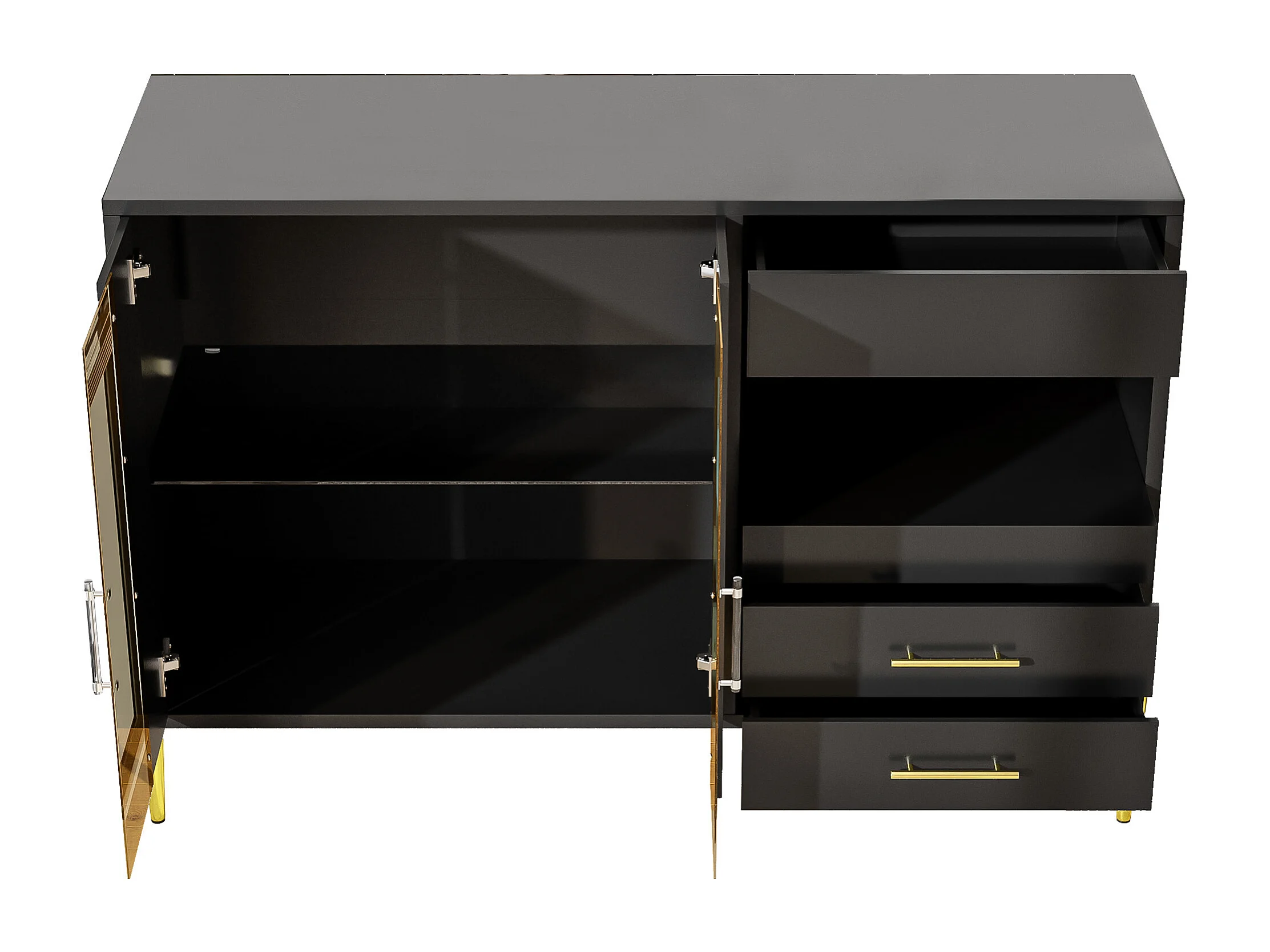 Buffet moderne 4 portes sans poignées – Design minimaliste noir, élégant et pratique pour salle à manger, salon et cuisine