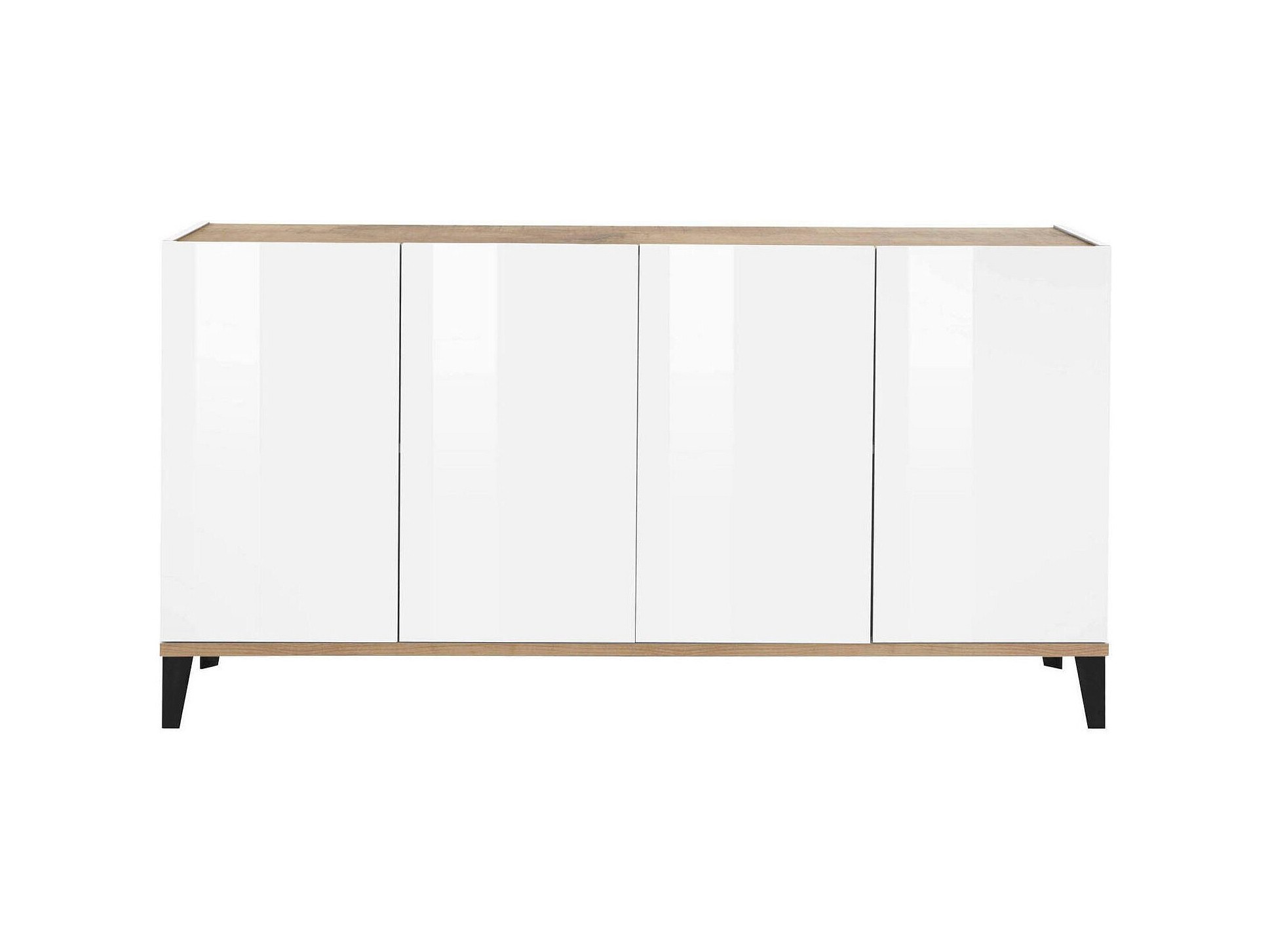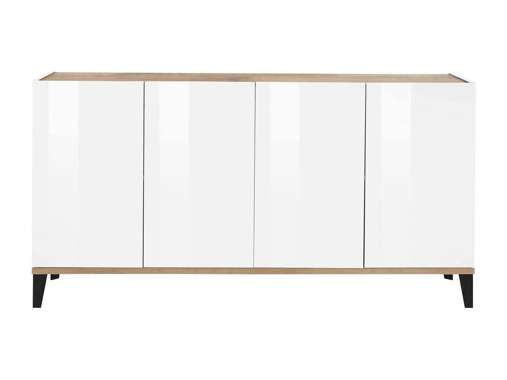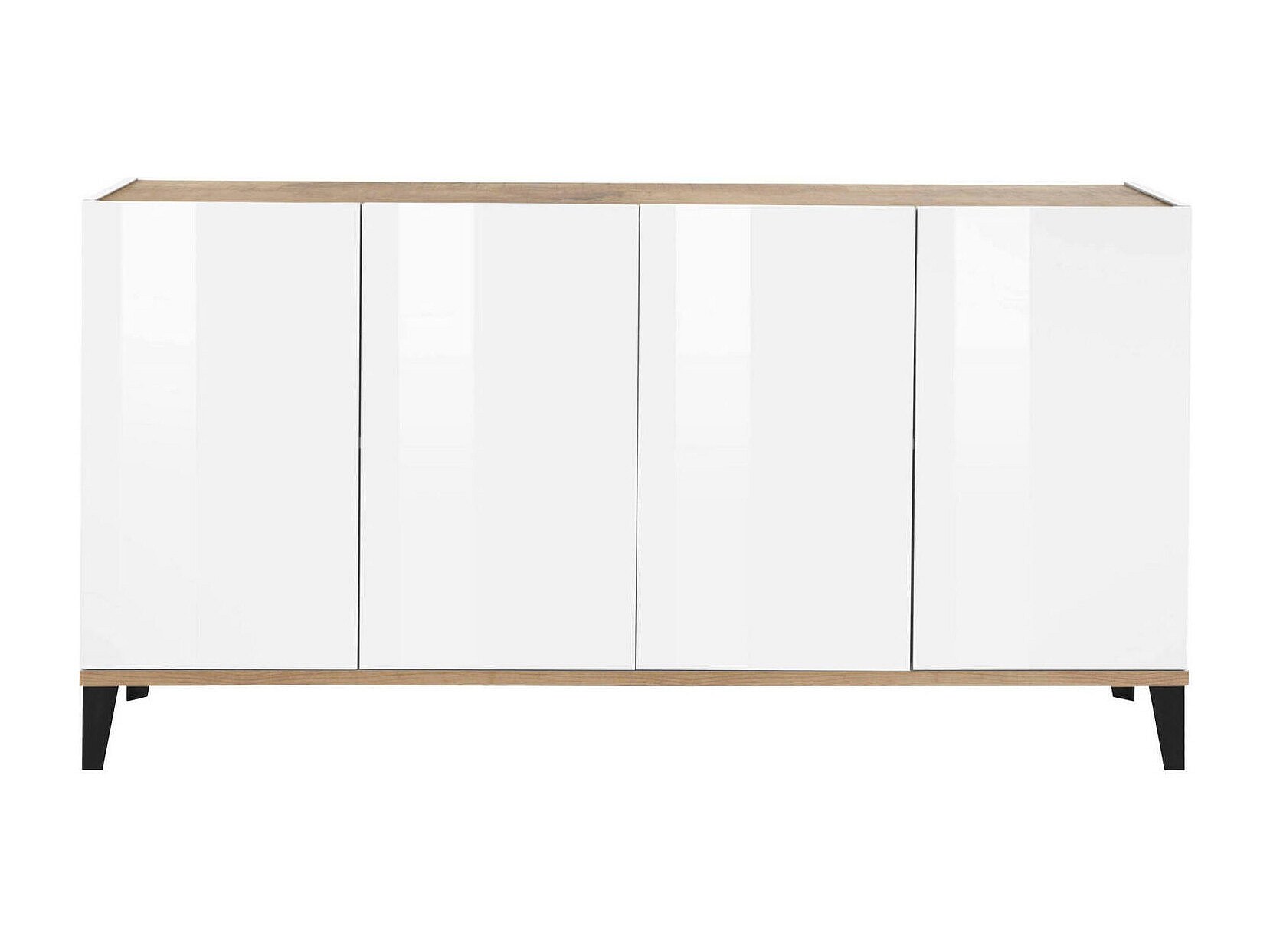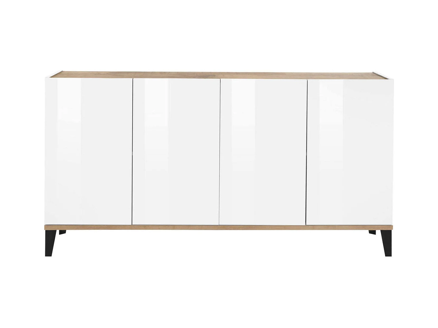 Buffet Liam, Buffet de cuisine avec 4 portes, Buffet de salon, 100% Made in Italy, 160x40h82 cm, Blanc brillant et Érable
