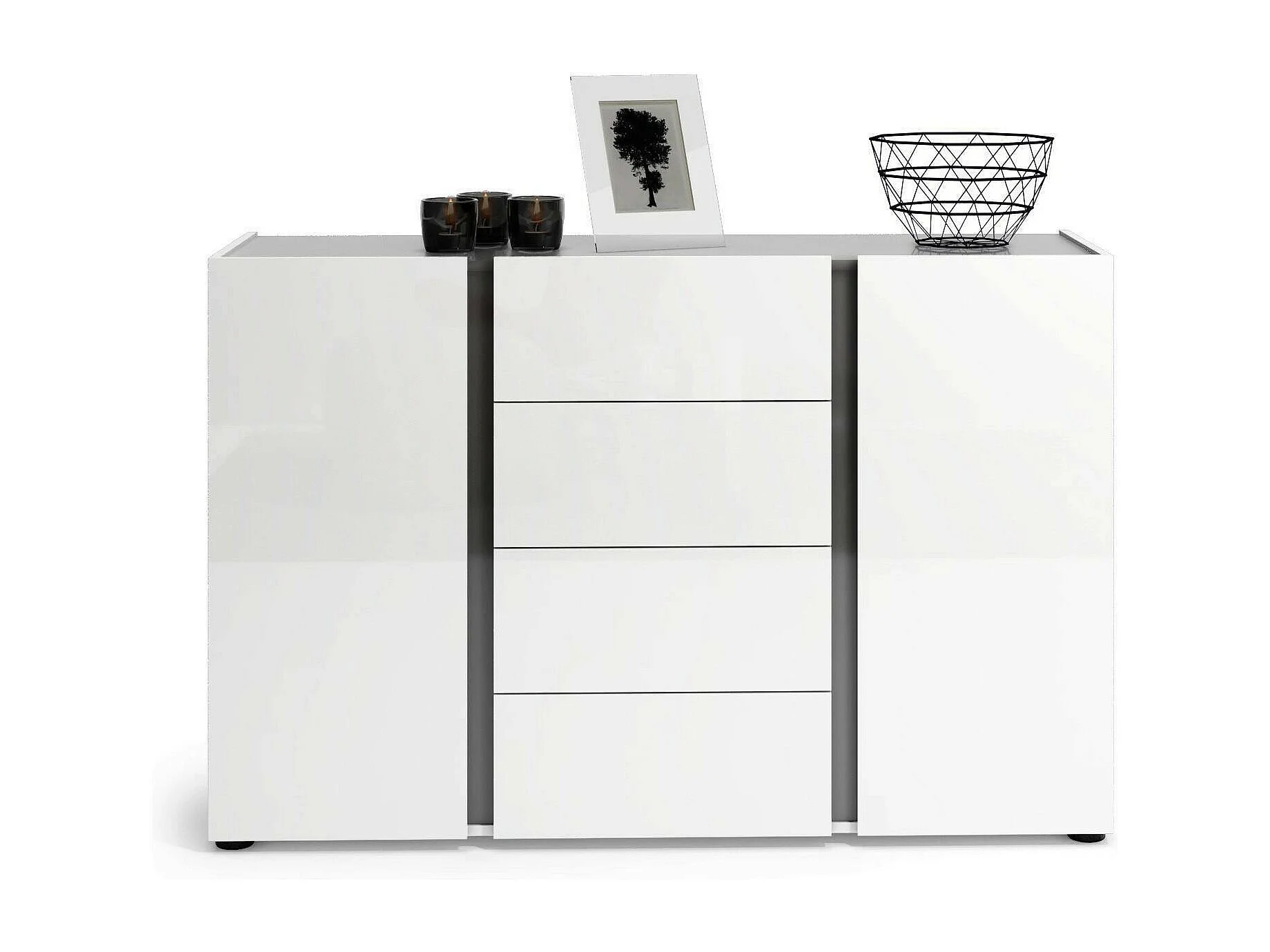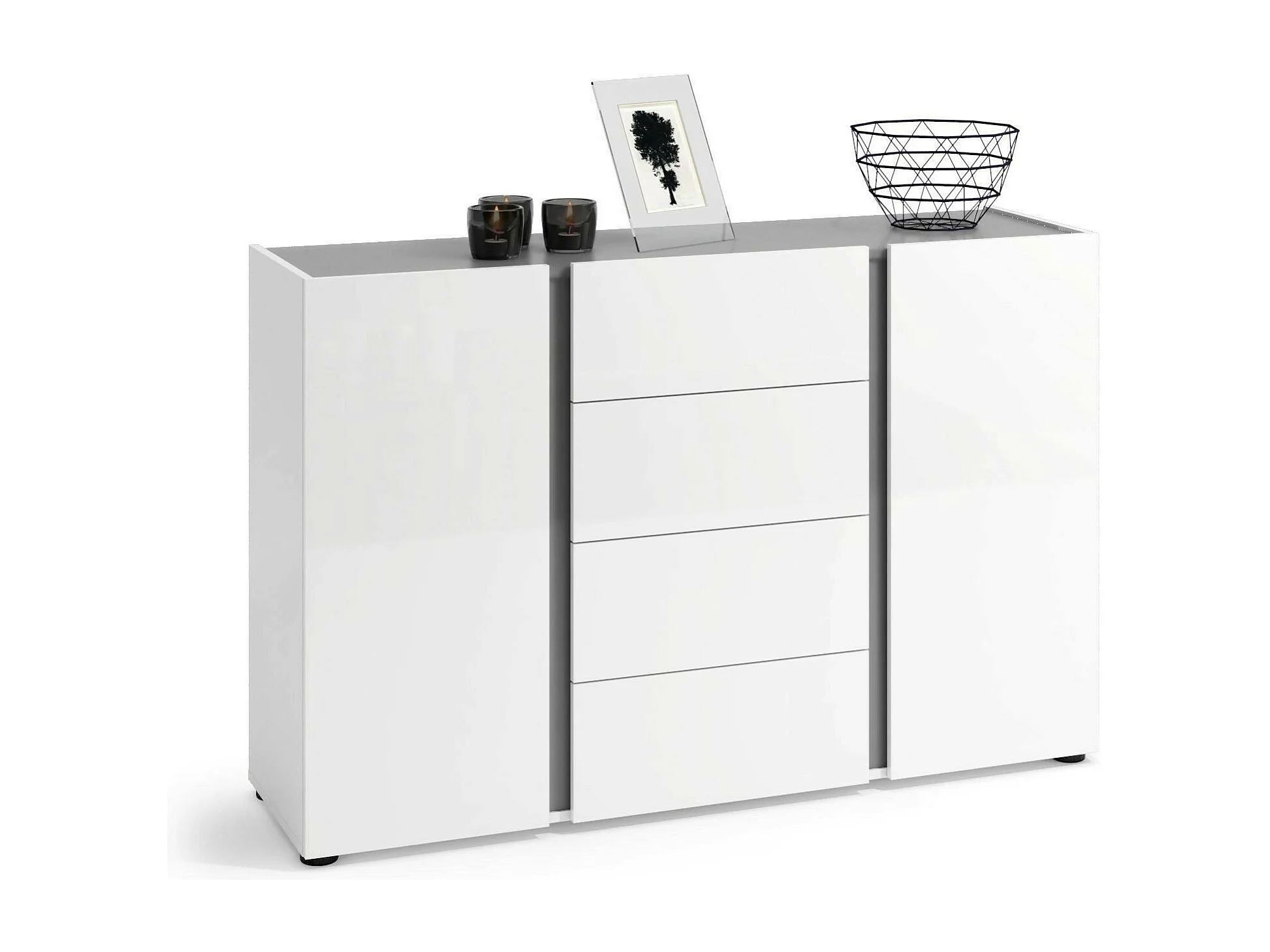 Buffet Libreville, Buffet du salon, Commode de salon, Garde-manger de cuisine, Made in Italy, 140x38h92 cm, Blanc brillant et anthracite