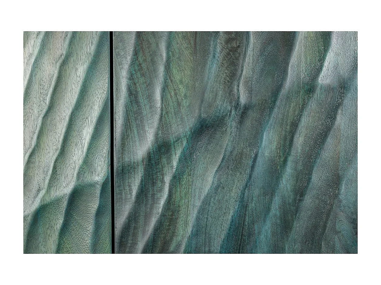 Buffet LUMBER 180 cm – Bois sculpté turquoise et doré, style design contemporain