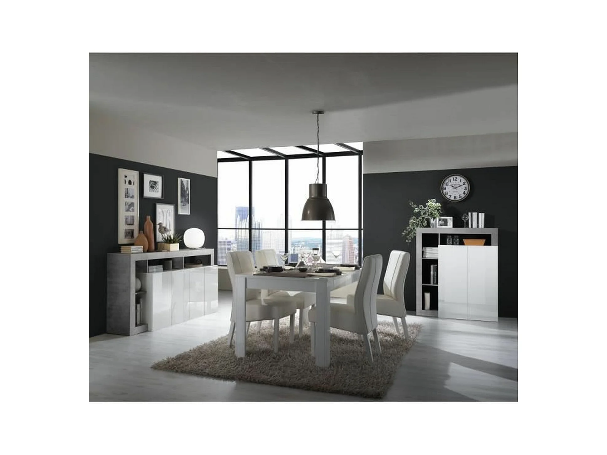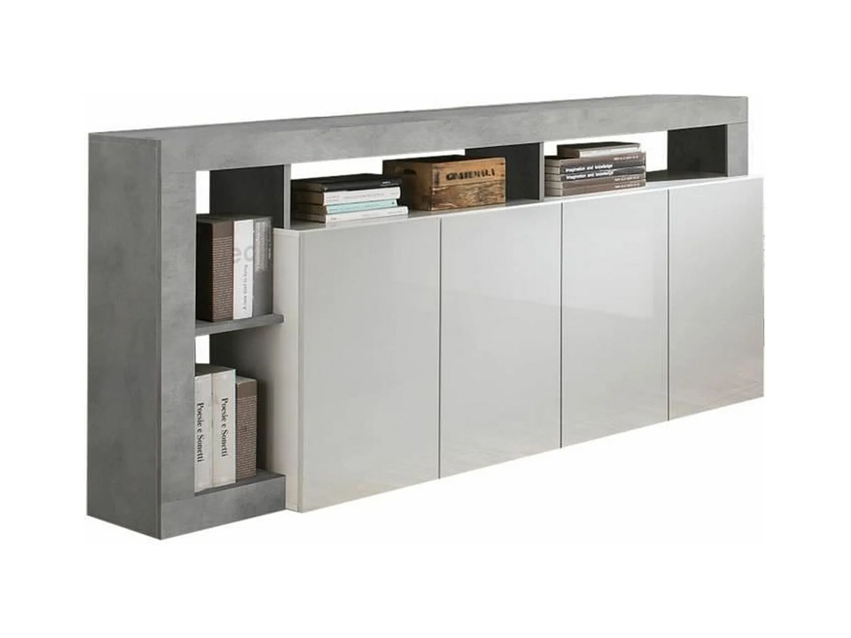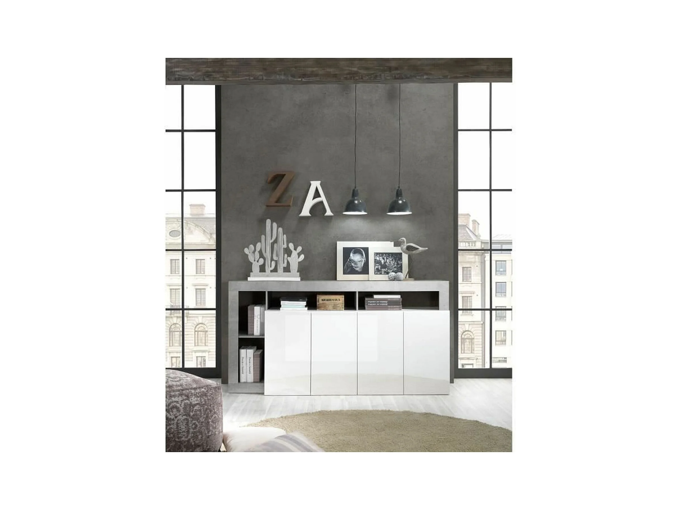Buffet Maestro effet béton & laqué blanc brillant 4 portes - 184 x 42 x Hauteur 93 cm