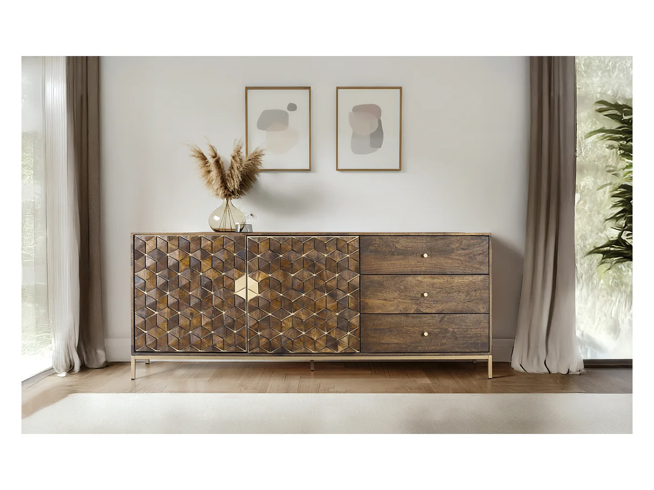 Buffet avec pieds en métal Marron 113x40x77 cm Bois massif OSLO QWE36748