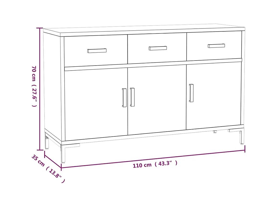 Buffet avec 3 tiroirs 110 x 33,5 x 70 cm Bois de chêne massif