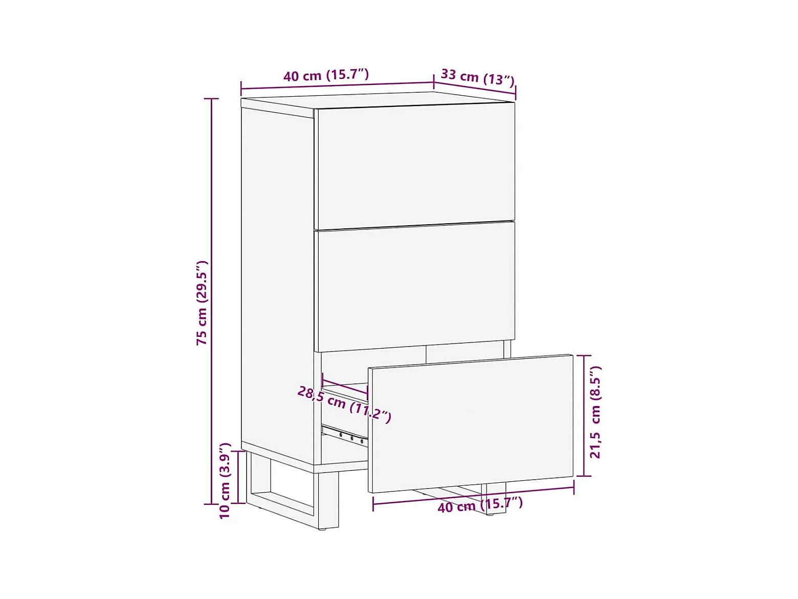 Buffet Marron 40 x 33 x 75 cm bois de manguier massif