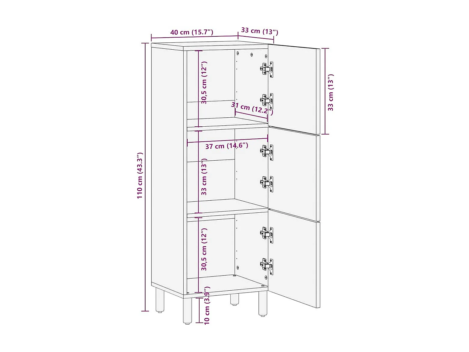 Buffet marron 40x33x110 cm bois de manguier massif