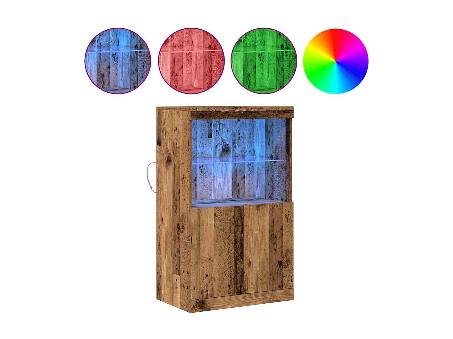 Buffet avec lumières LED en bois ancien 60x37x67 cm