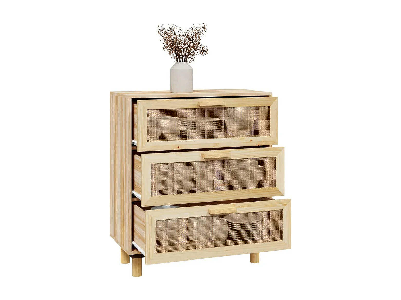Buffet Marron 60x30x70 cm Bois de pin massif et rotin naturel
