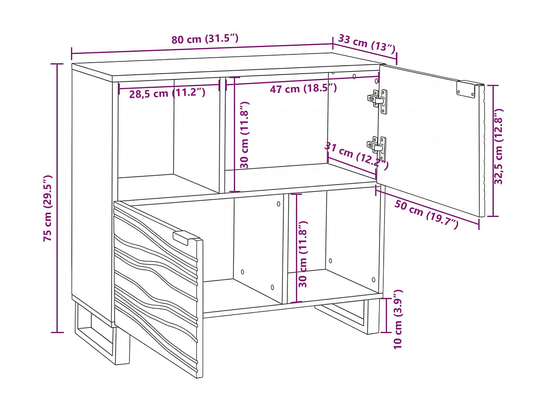 Buffet Marron 80 x 33 x 75 cm bois de manguier massif