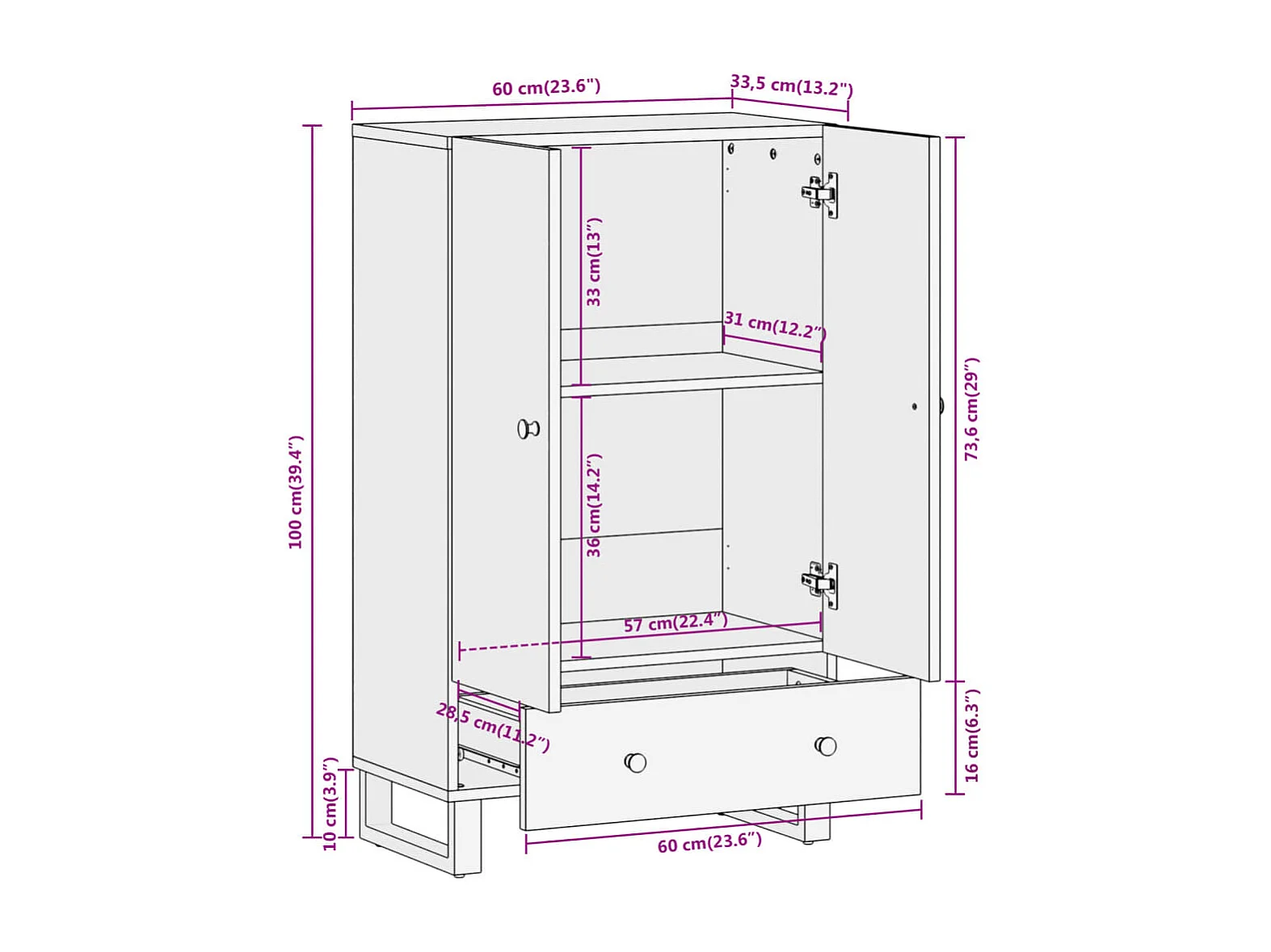Buffet marron et noir 60x33,5x100 cm bois massif de manguier