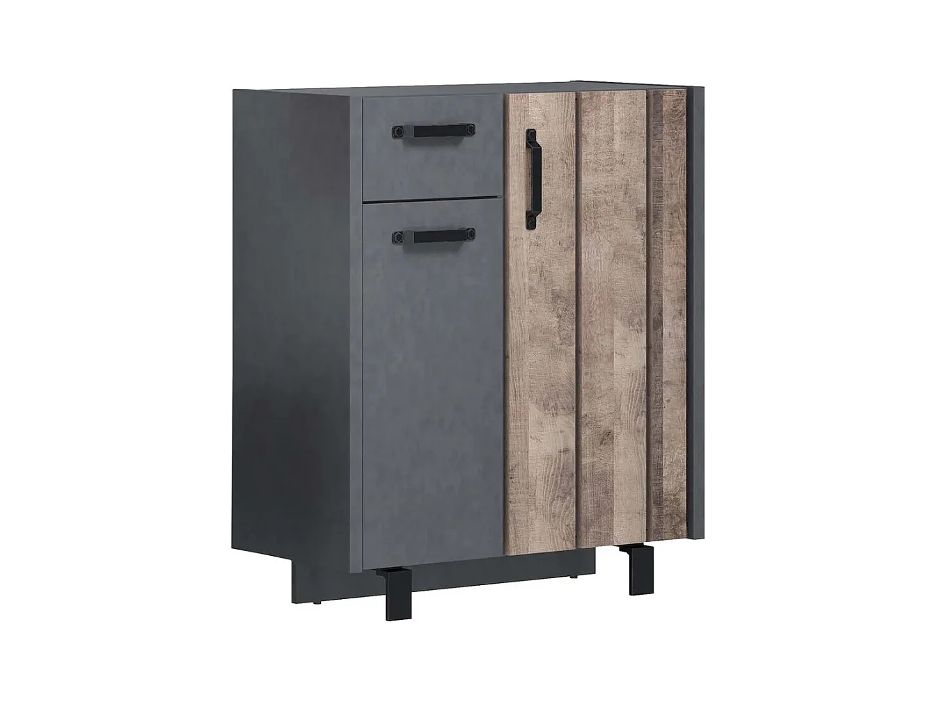 Commode 2 portes 1 tiroir mélaminé gris mat et chêne foncé Yanis
