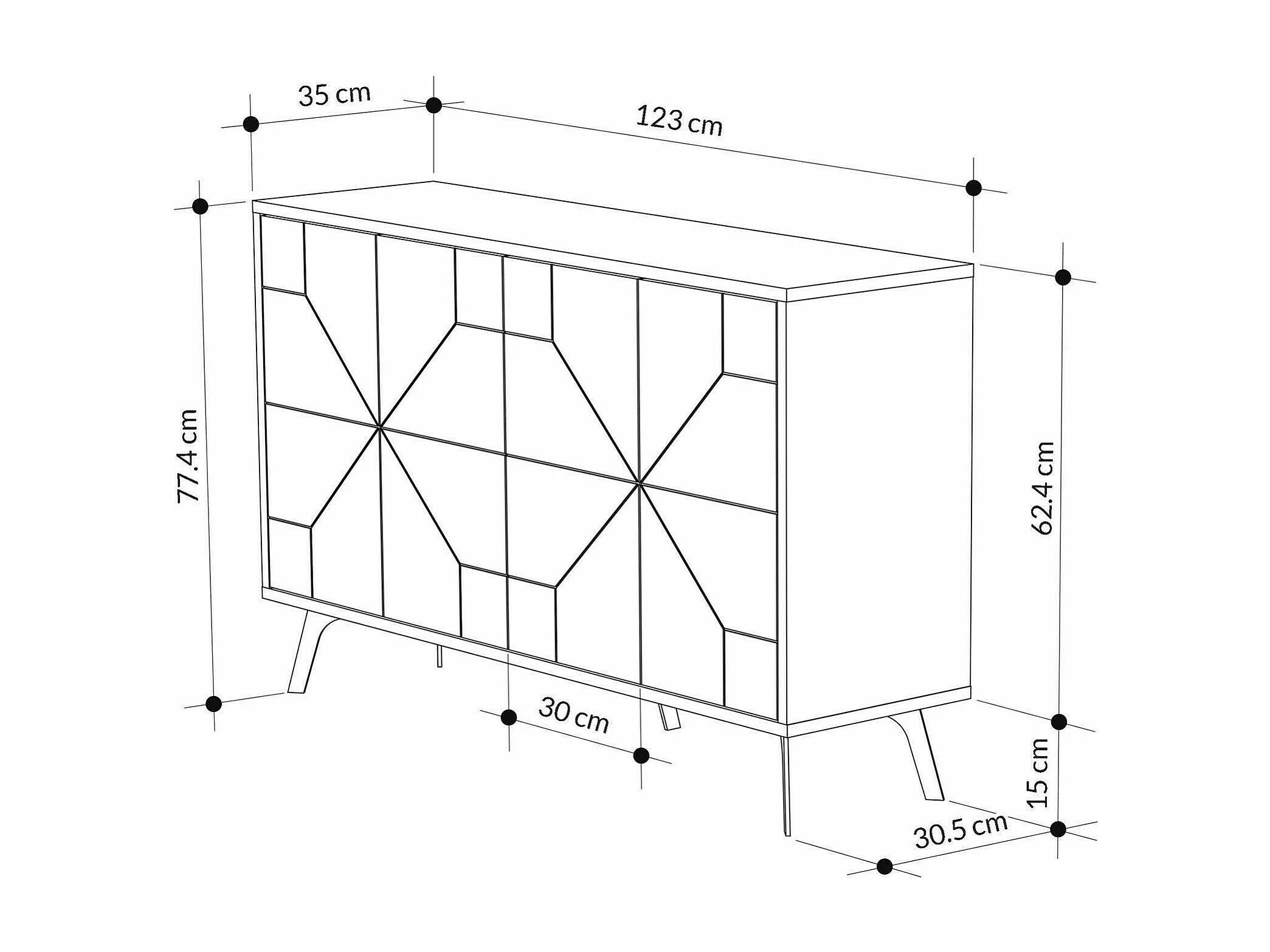 Buffet Meridian, Buffet du salon, Commode de salon, Garde-manger de cuisine, 123x35h62 cm, Marbre Blanc