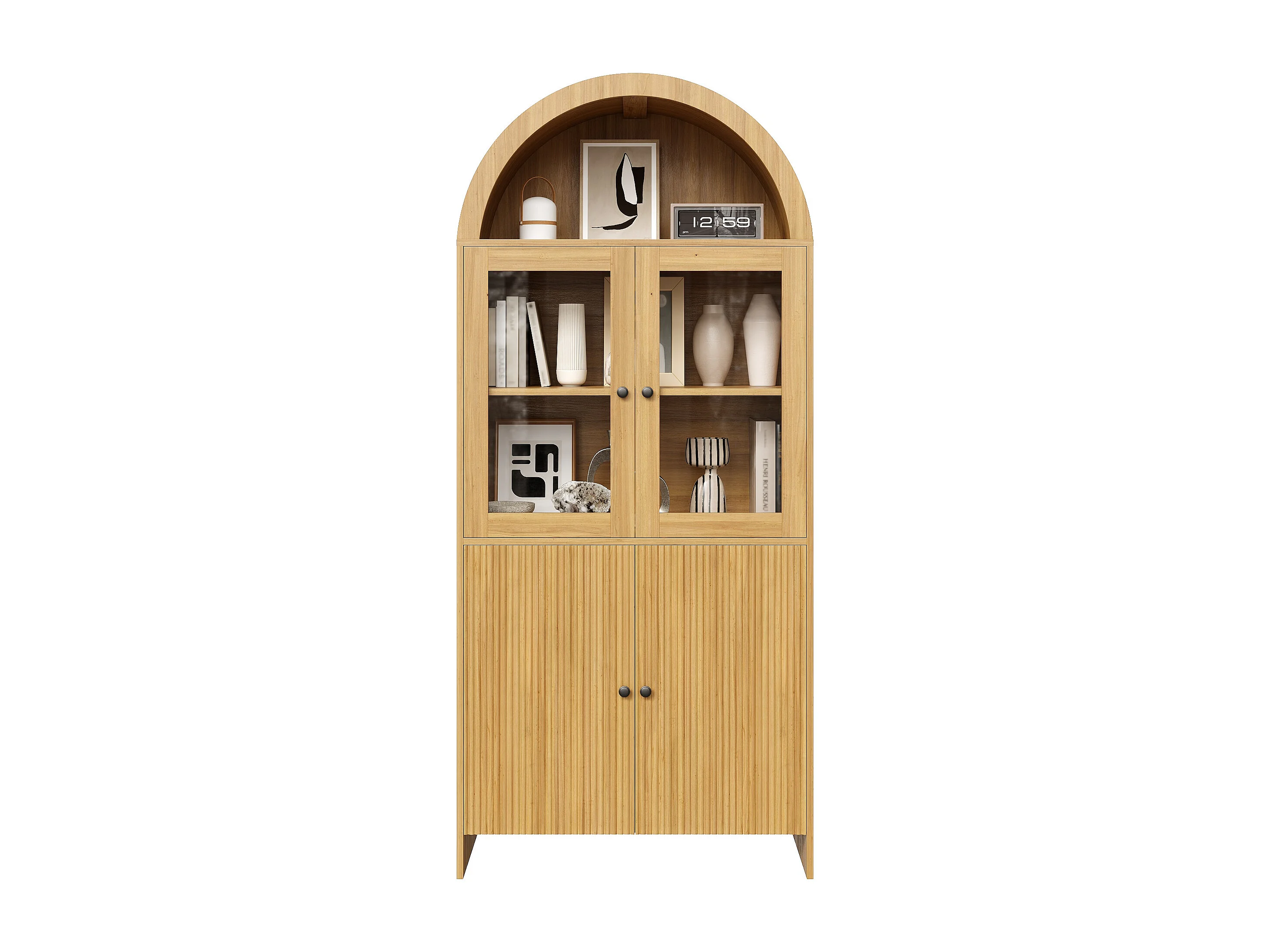 Buffet meuble de salon de rangement - 78 x 40 x 176 cm - avec portes vitrées - fermé à motif ondulé - aggloméré - naturel