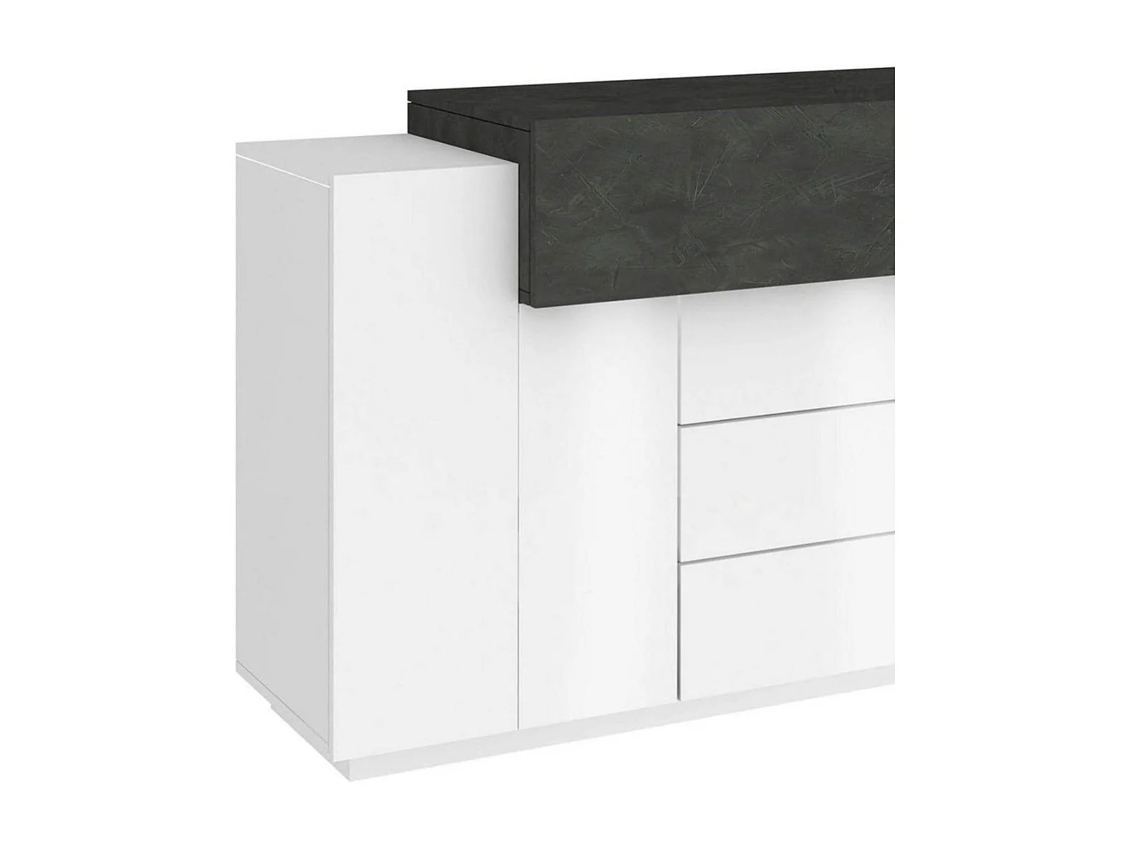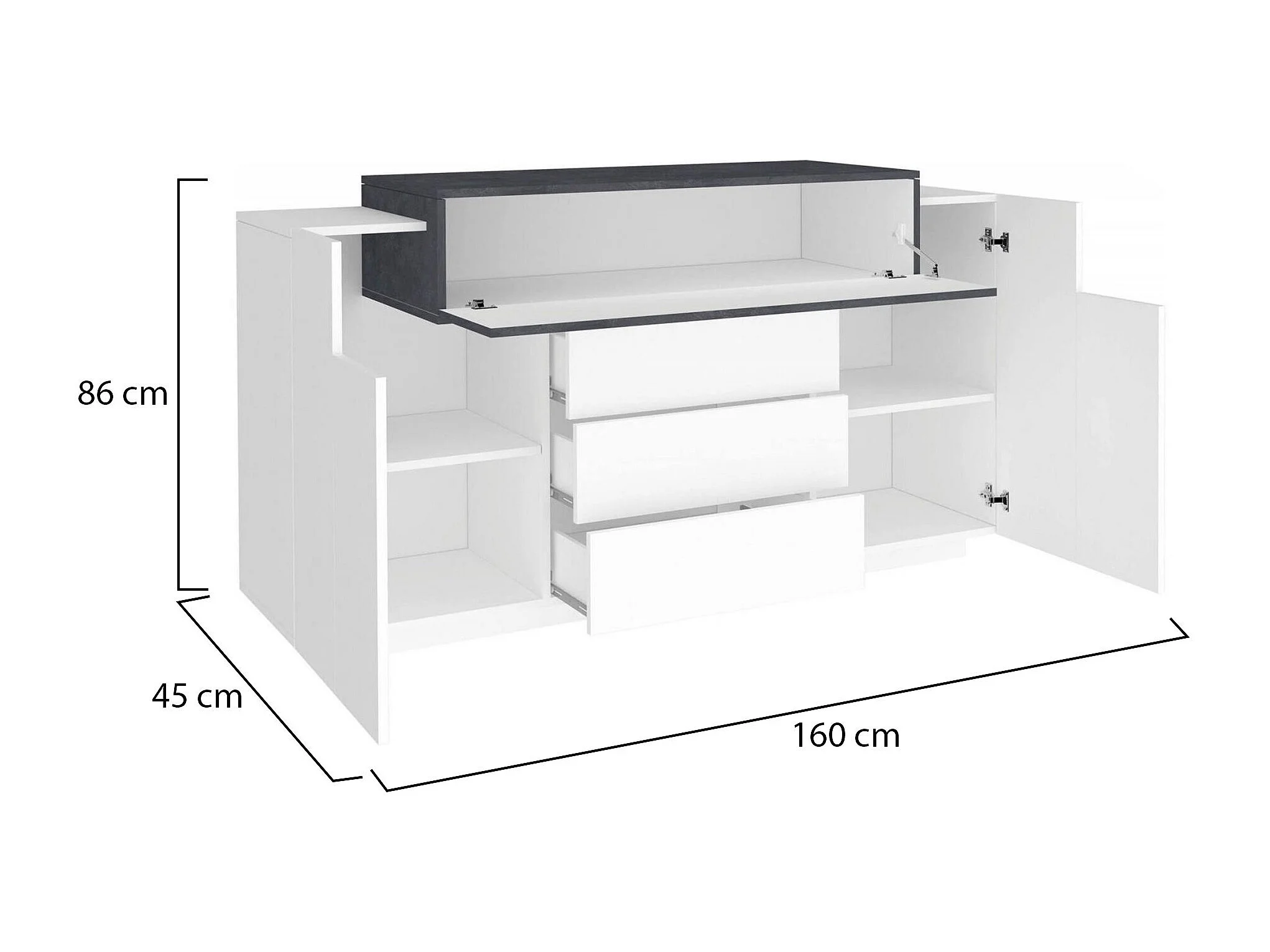 Buffet Milo, Buffet de cuisine avec 3 portes et 3 tiroirs, Buffet de salon, 100% Made in Italy, 160x45h86 cm, Blanc brillant et ardoise
