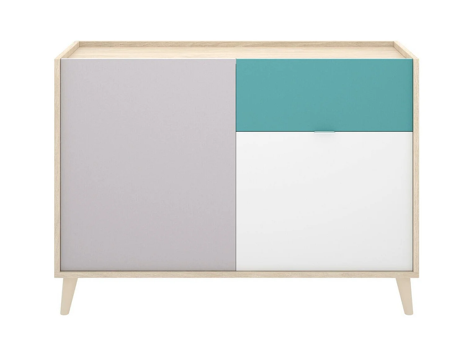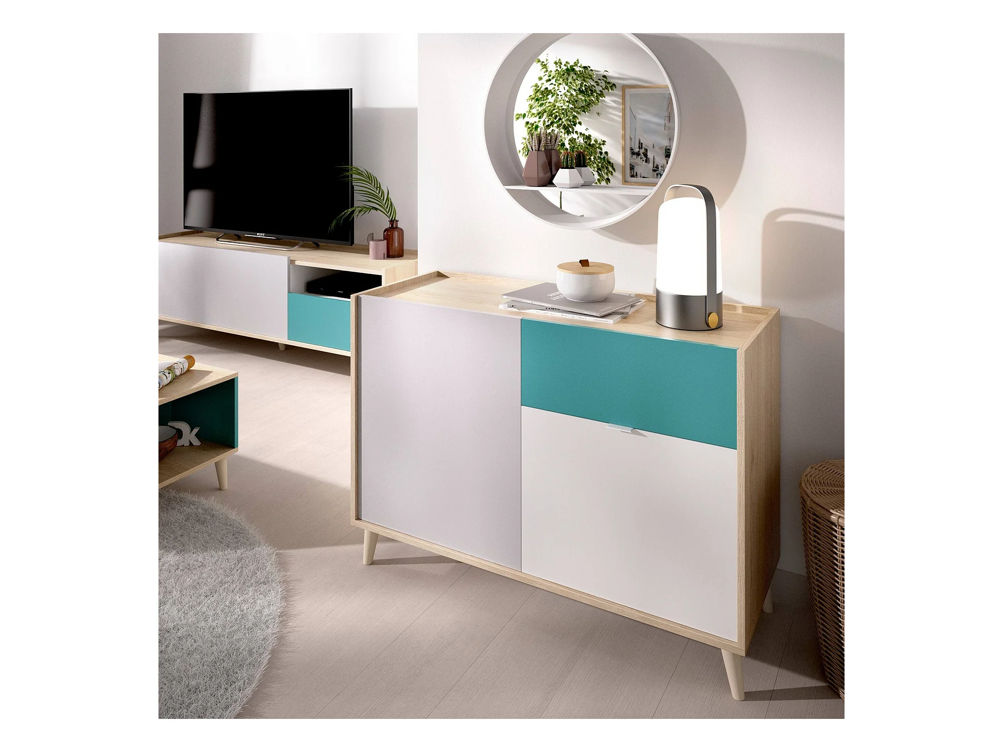 Buffet Mitchell, Buffet de salon, Buffet de salon moderne avec 2 portes, 105x43h75 cm, Blanc et Chêne