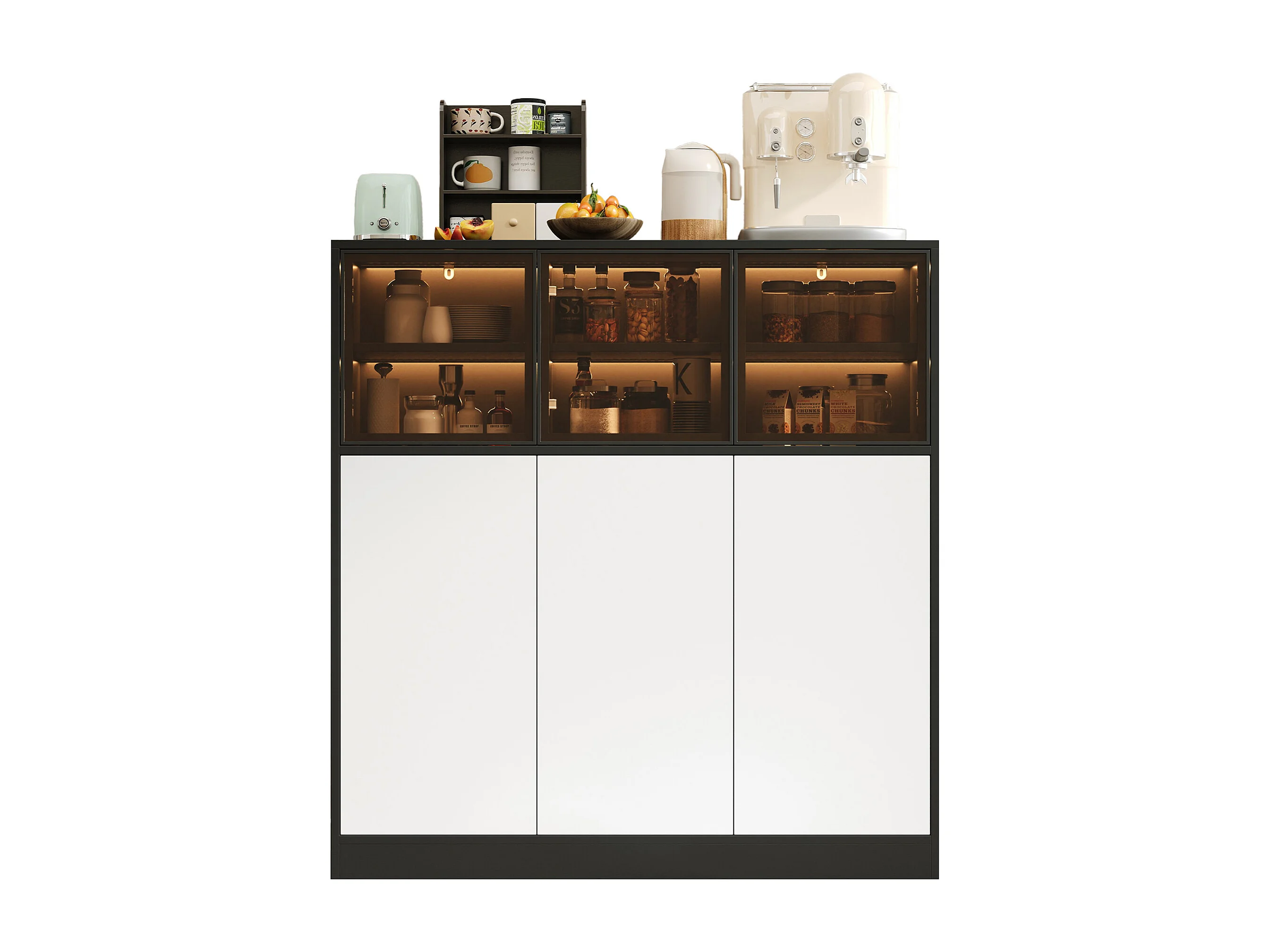 Buffet moderne 100x40x105cm - avec 3 portes vitrées et 3 portes blanches - avec LED - panneau de particules - Blanc + Noir