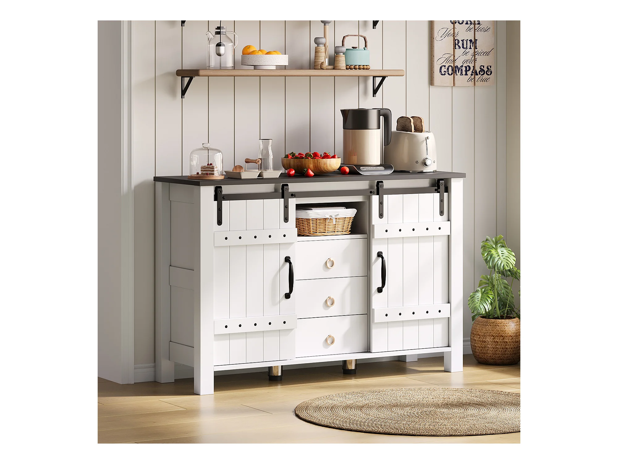Buffet moderne 120x40x80cm - avec 2 portes coulissantes et 3 tiroirs - Blanc + Marron