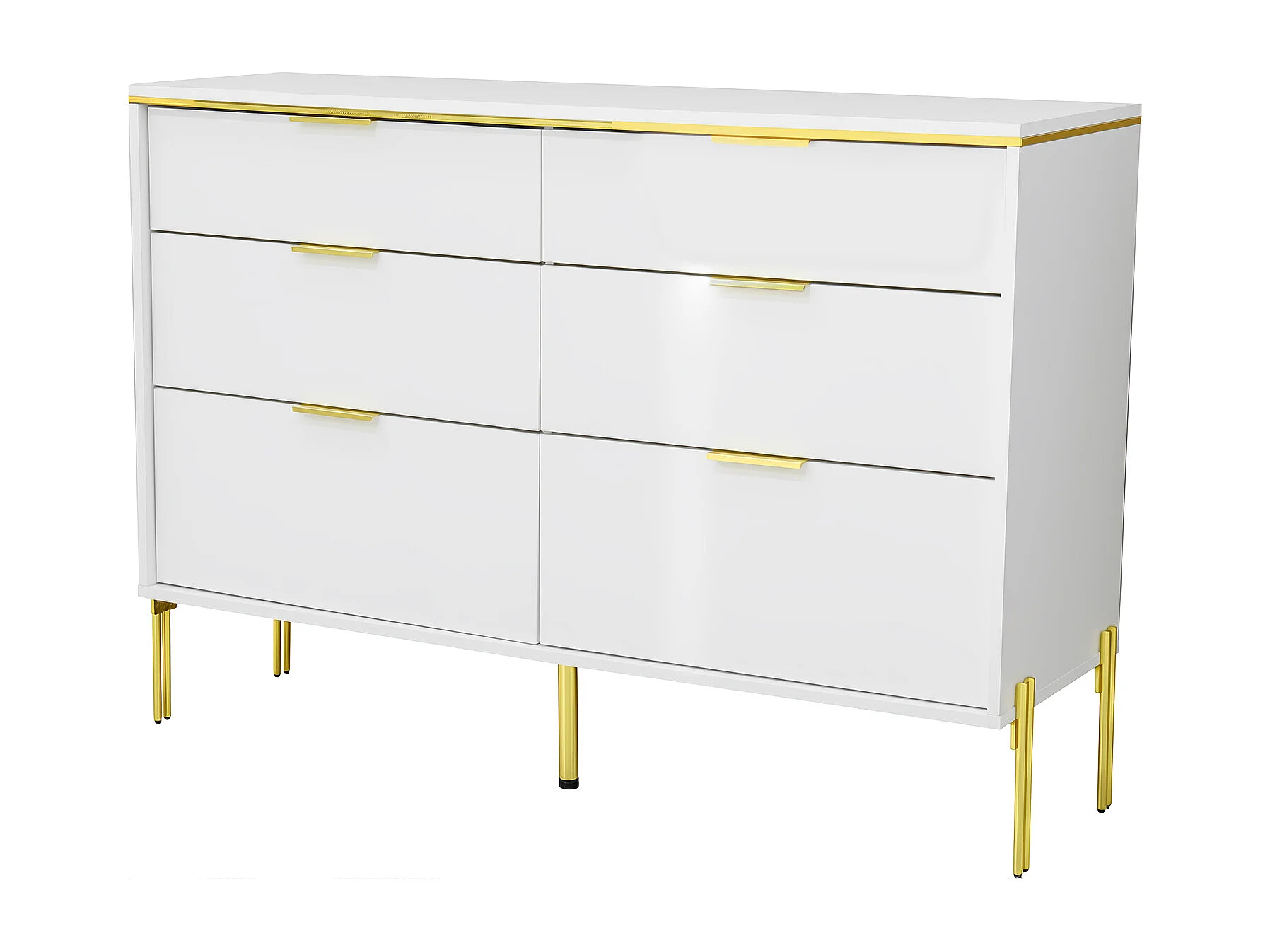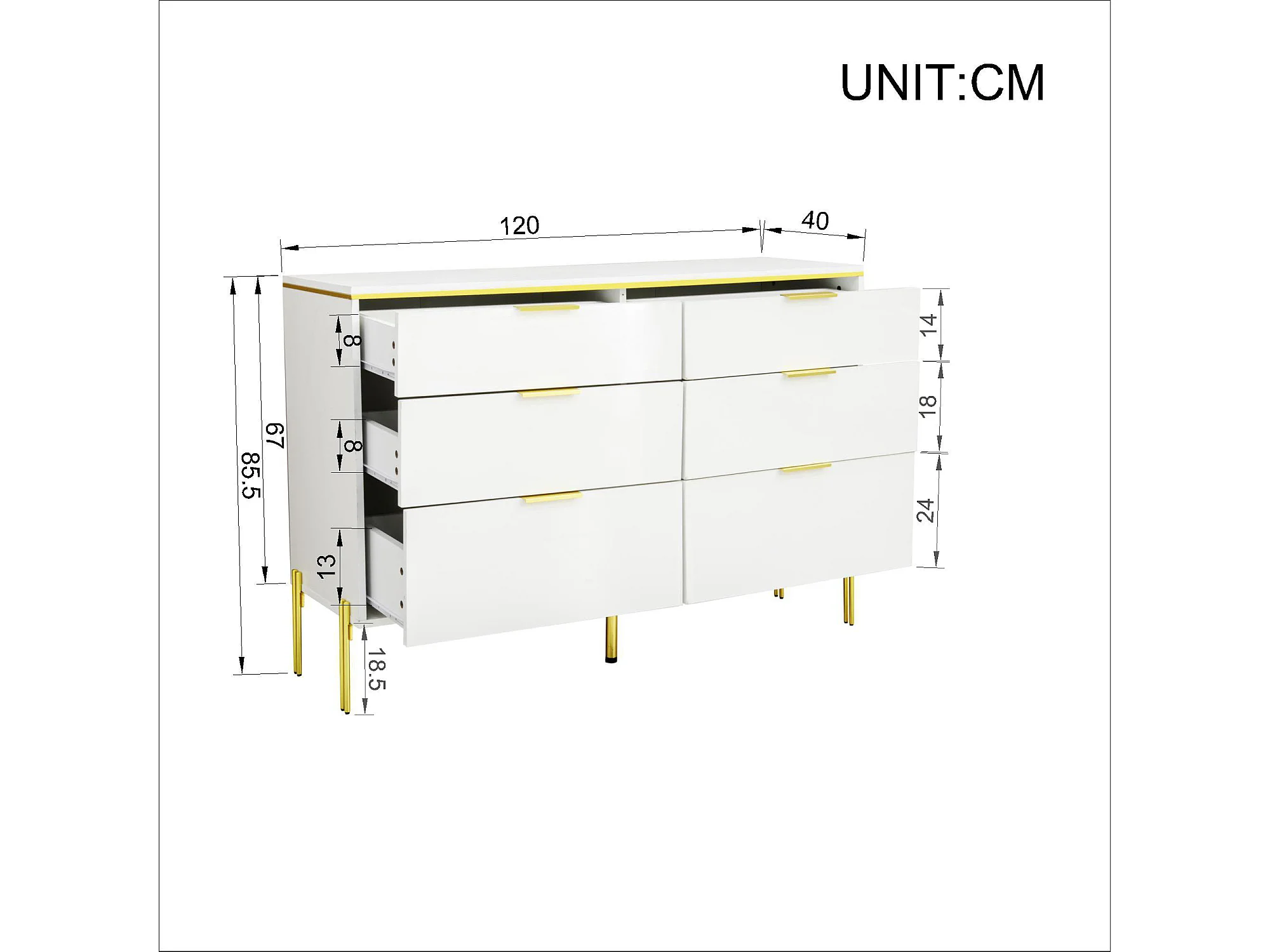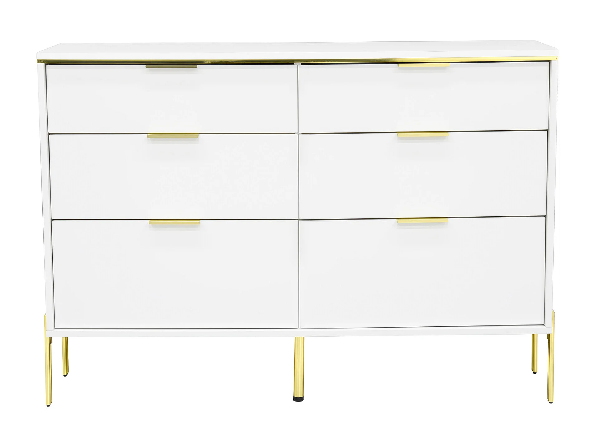 Buffet moderne 120x40x85,5 cm - avec 6 tiroirs - Blanc et doré