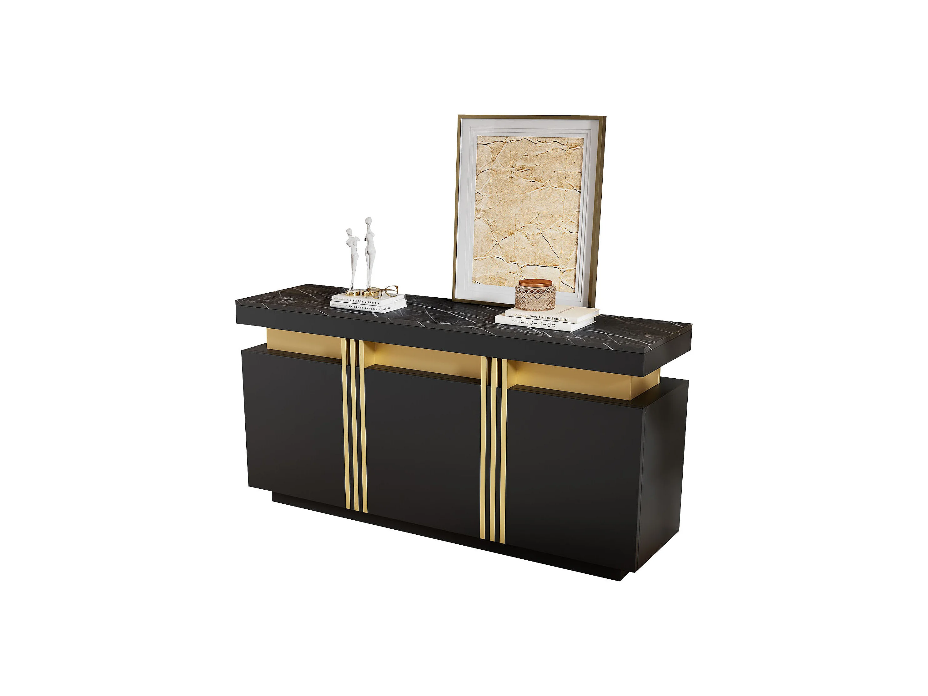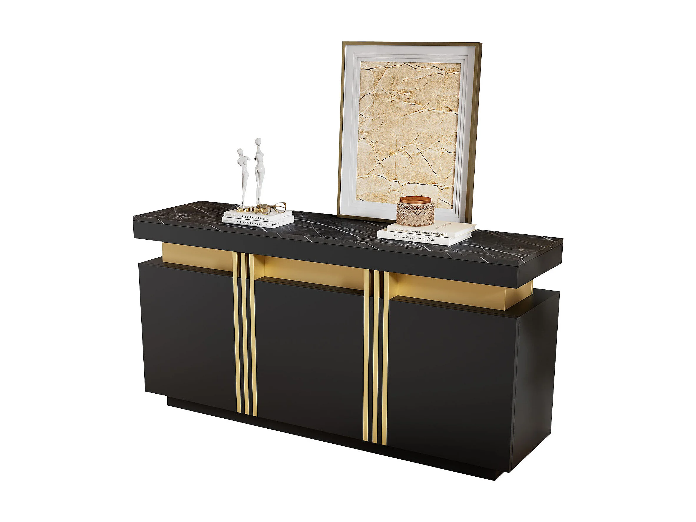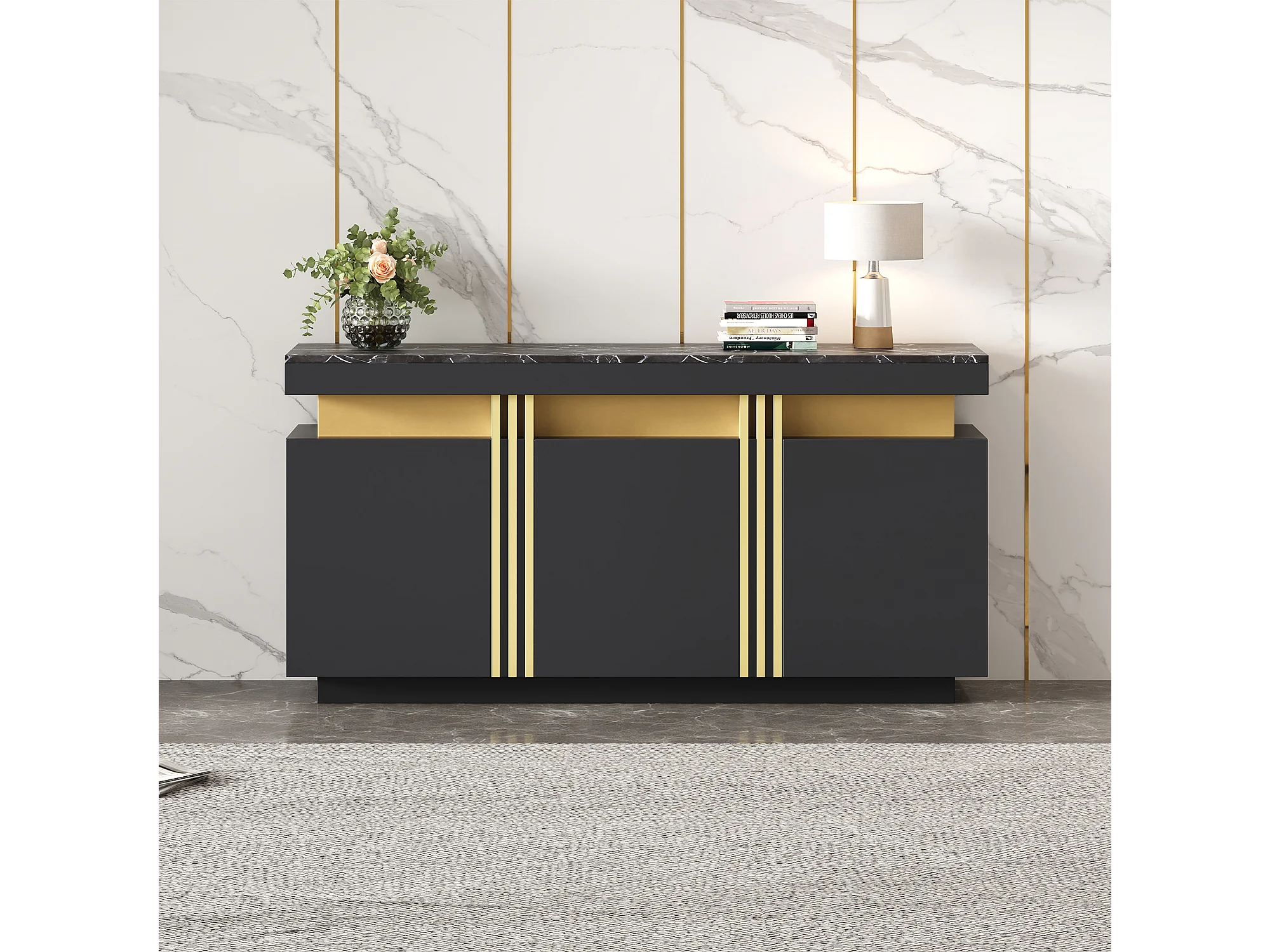 Buffet moderne 140x38x70cm - 3 portes - Étagères réglables - Noir