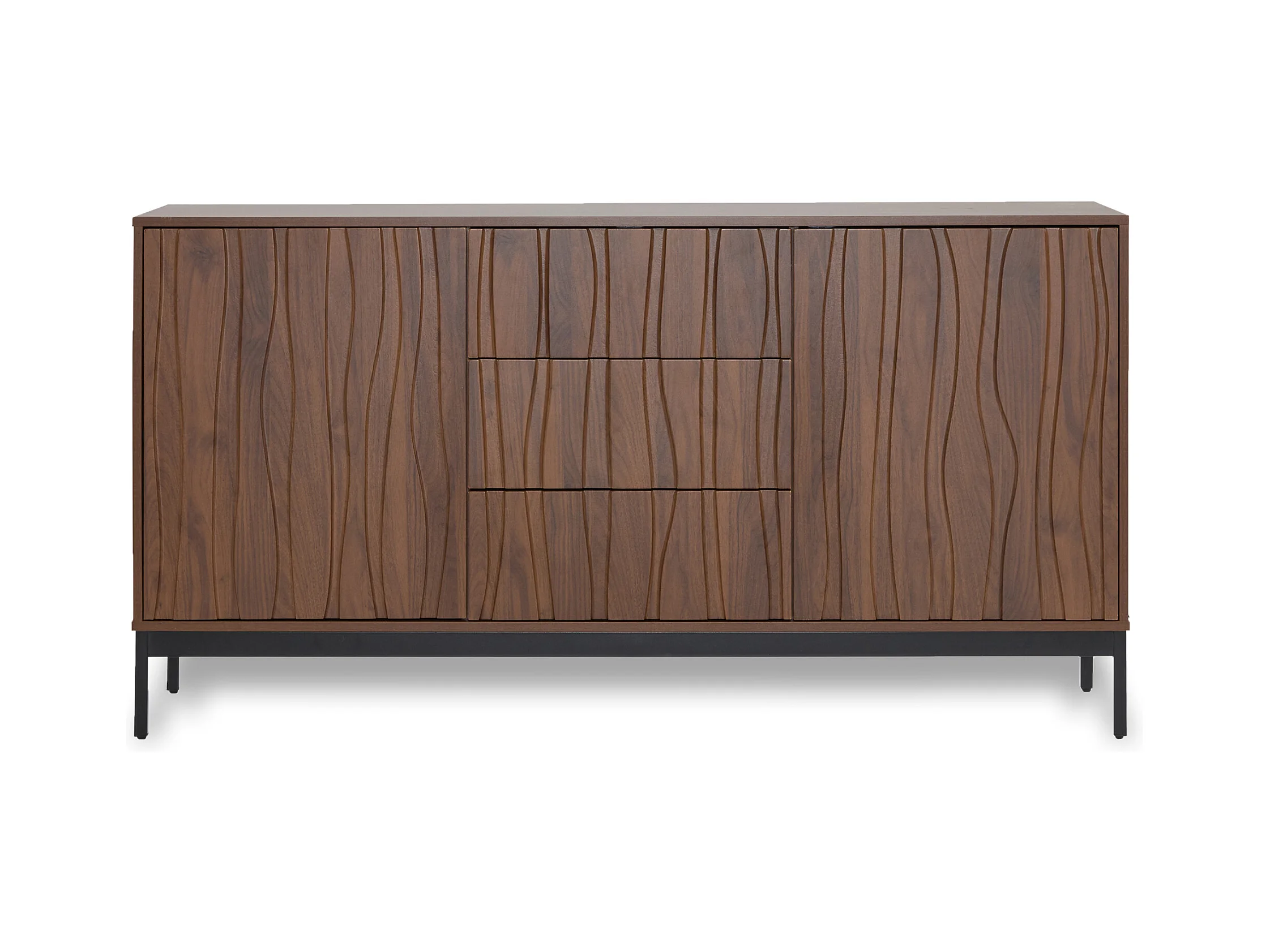 Buffet avec 3 portes - 150 x 40 x 80 cm - Bois MDF - Etagères réglables - Design 3D ondulé - Marron