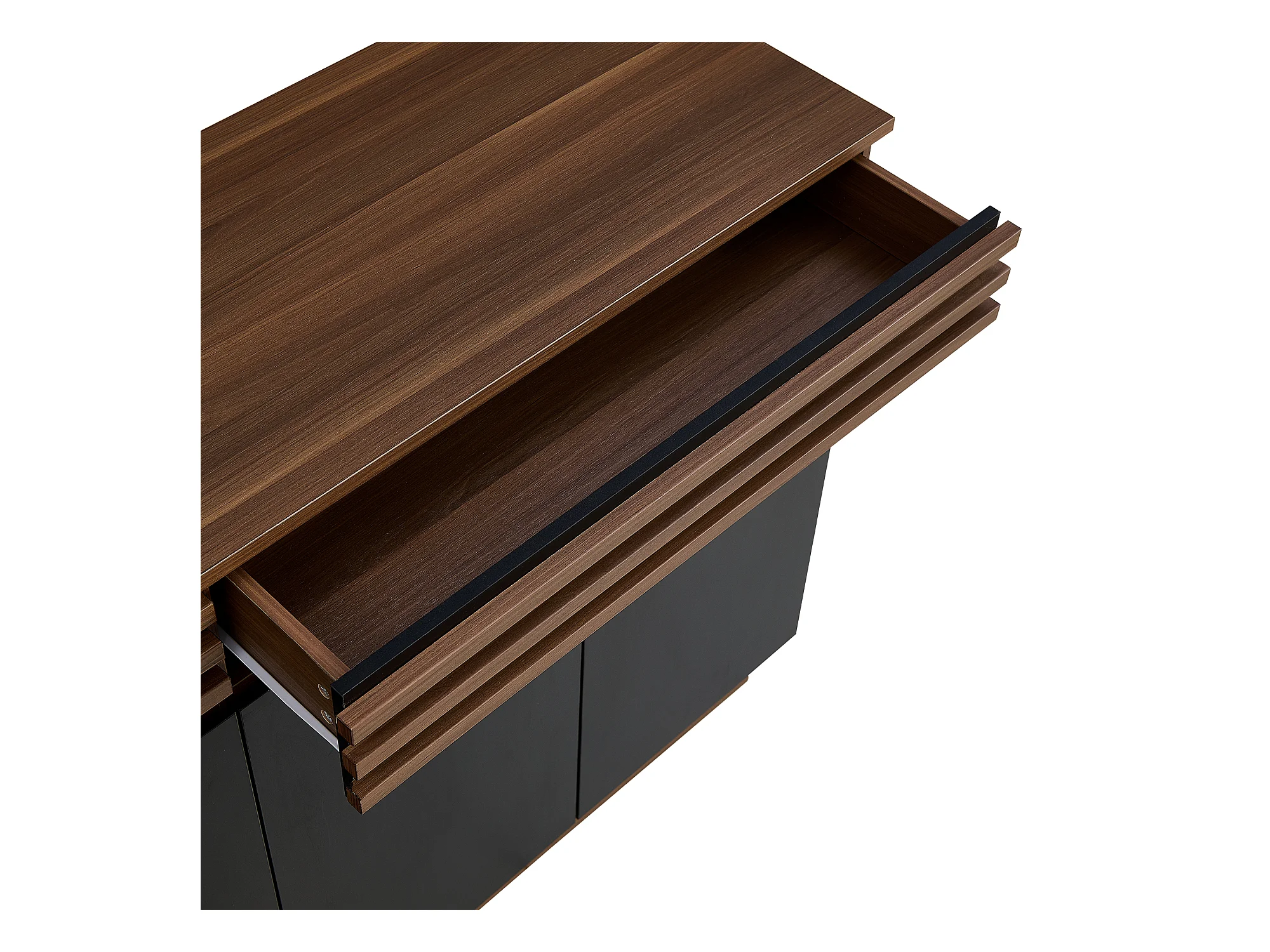 Buffet moderne 150x40x85 cm - 2 tiroirs et 4 portes - aspect bois - MDF - Noir + Marron