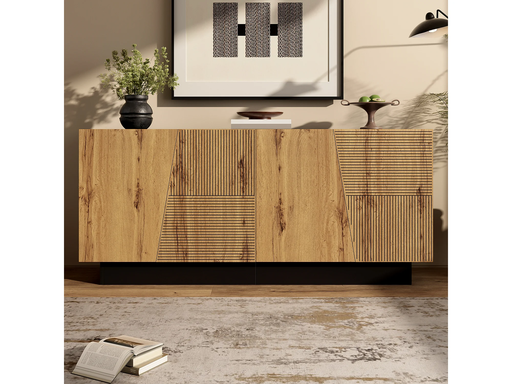 Buffet moderne 160x40x72 cm - avec 4 portes - Étagères réglables - Panneaux de particules - Naturel