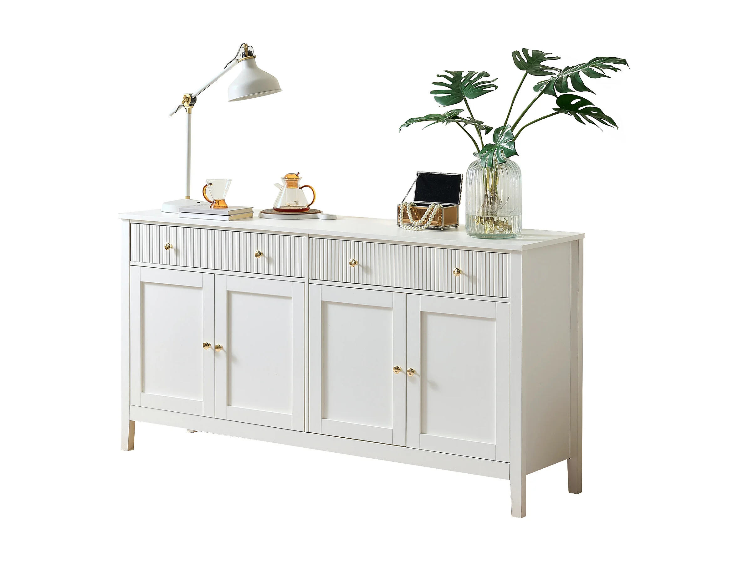 Buffet moderne 162x40x80 cm - avec 4 portes - MDF + panneaux de particules - Blanc